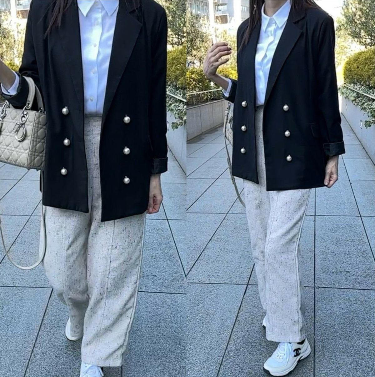 一部即納 3color ダブル ボタン ショート ツイード ジャケット