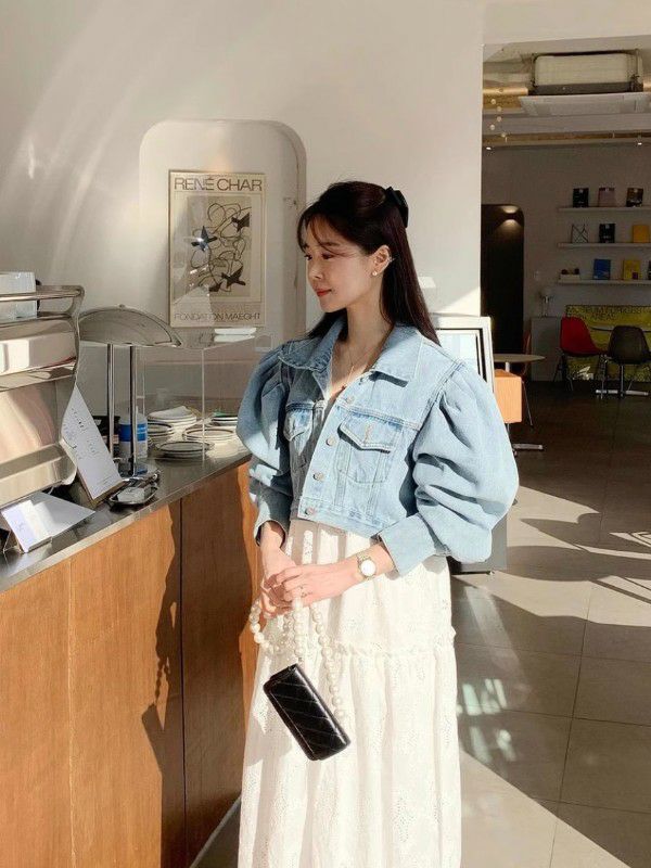 予約 ボリュームスリーブ ショート丈 デニムジャケット