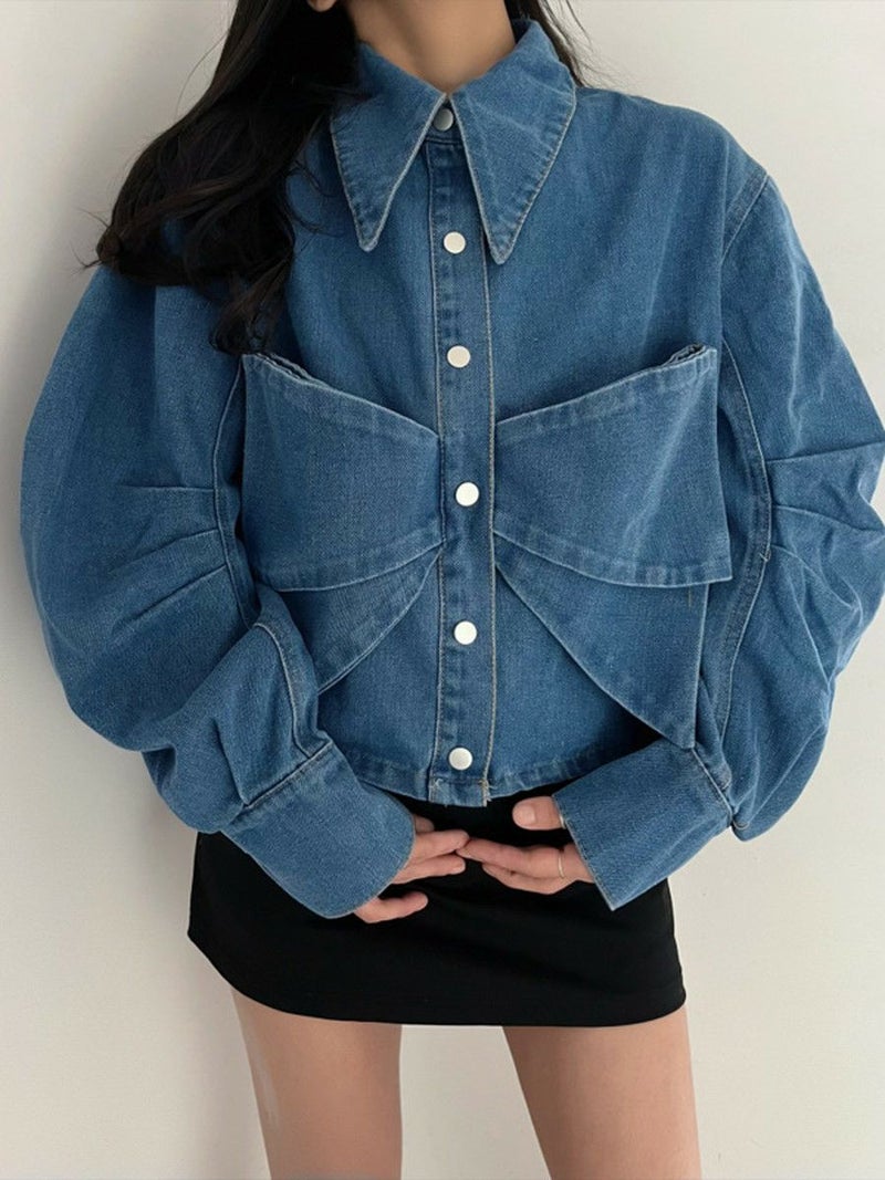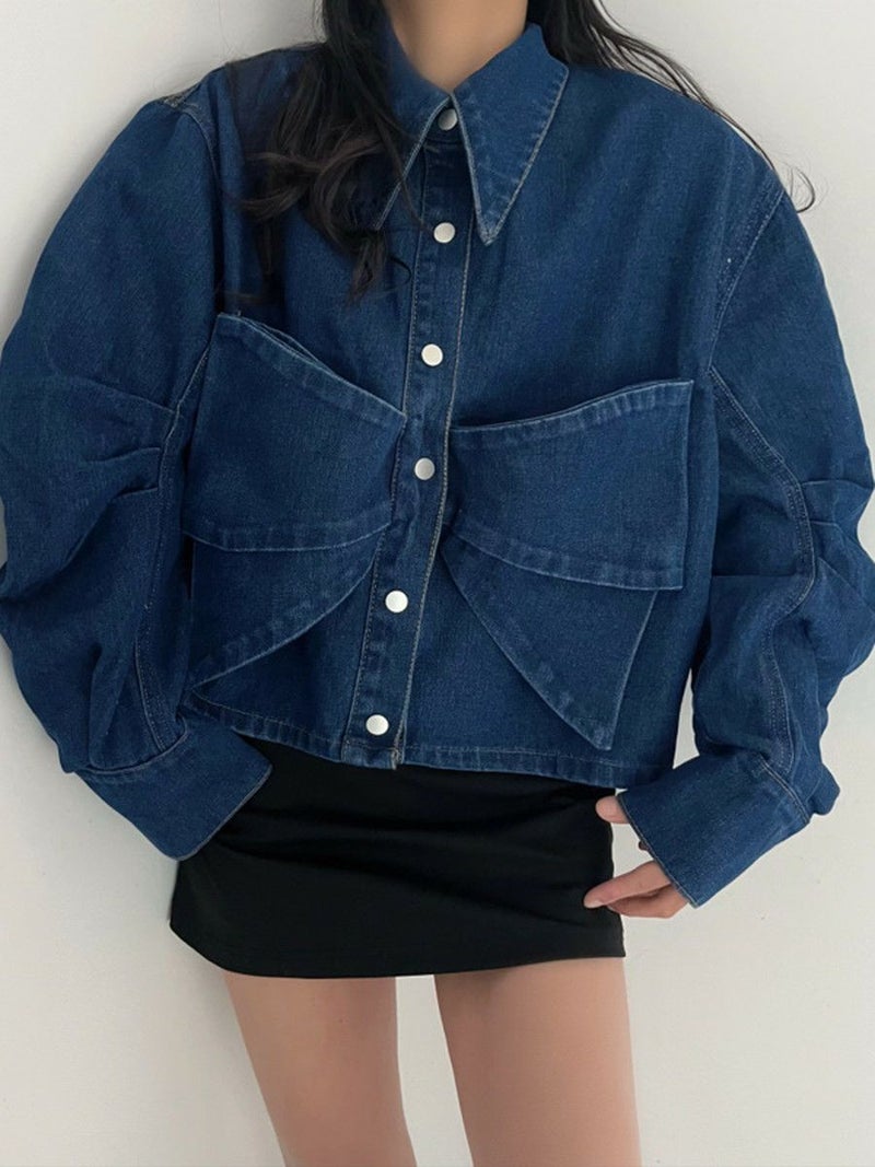 フロントのリボンデザインがフェミニンなデニムジャケット