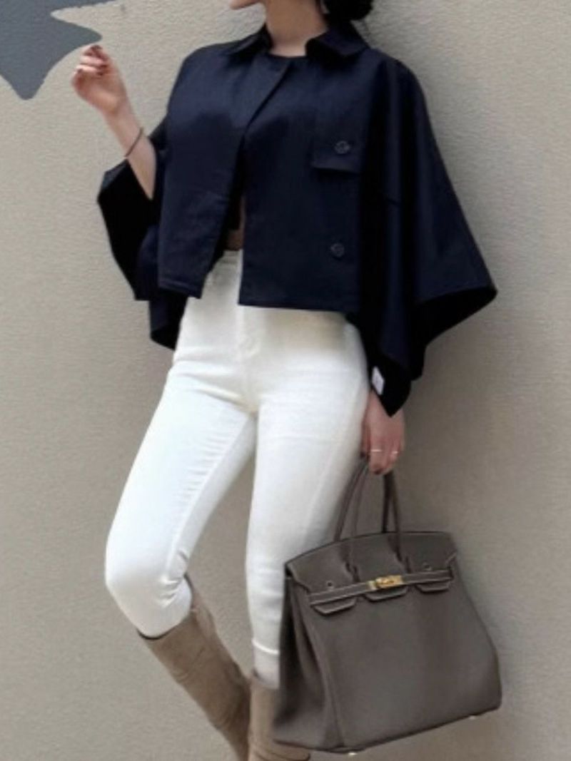 ショート丈と七分丈袖が今季らしいデザインのトレンチジャケット