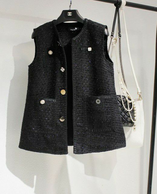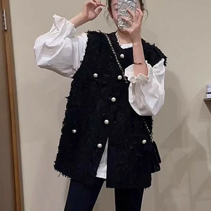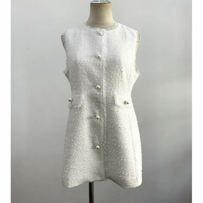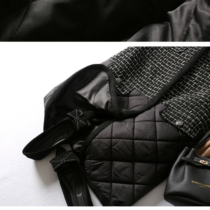 一部即納 2color ペプラム パール ボタン ツイード ジレ