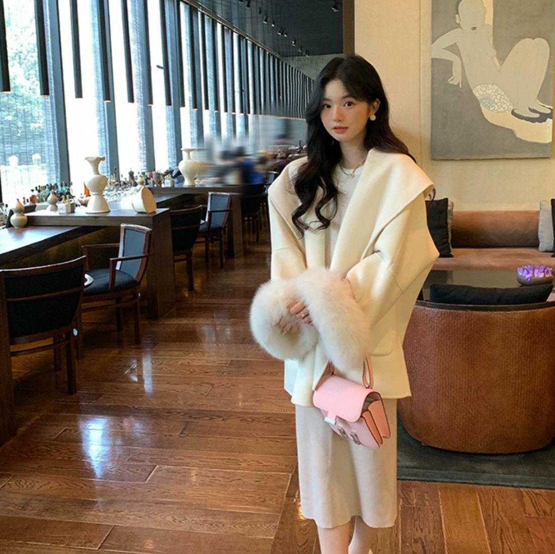 予約 4color リアルファー ウール フード コート 袖ファー type