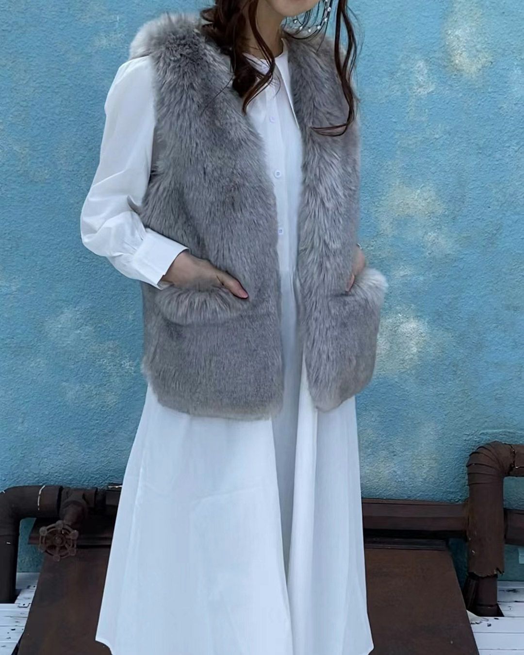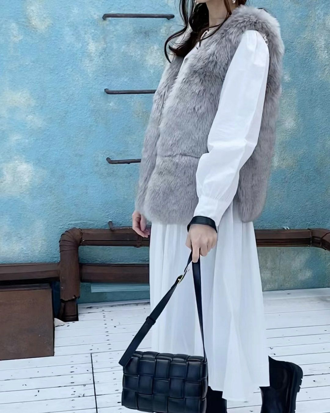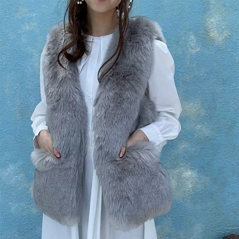 一部即納 エコファー ボリューム ファーベスト ジレ