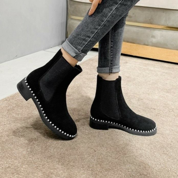 予約* 4type パール ラウンド デザインソール ショートブーツ heel 4cm