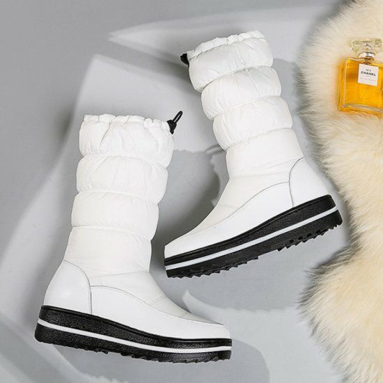 即納* ミドル丈 バイカラー ウエッジソール スノーブーツ ダウン調