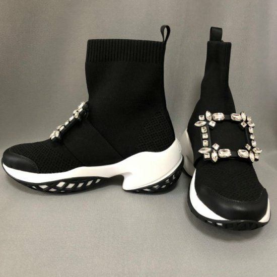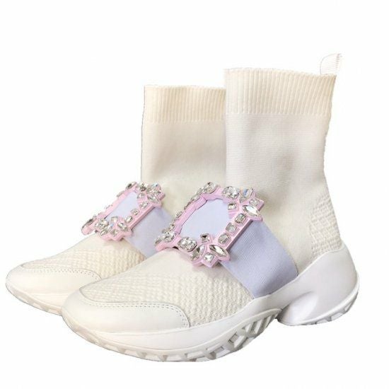 即納 スクエア ビジュー モチーフ ストレッチ ブーツ