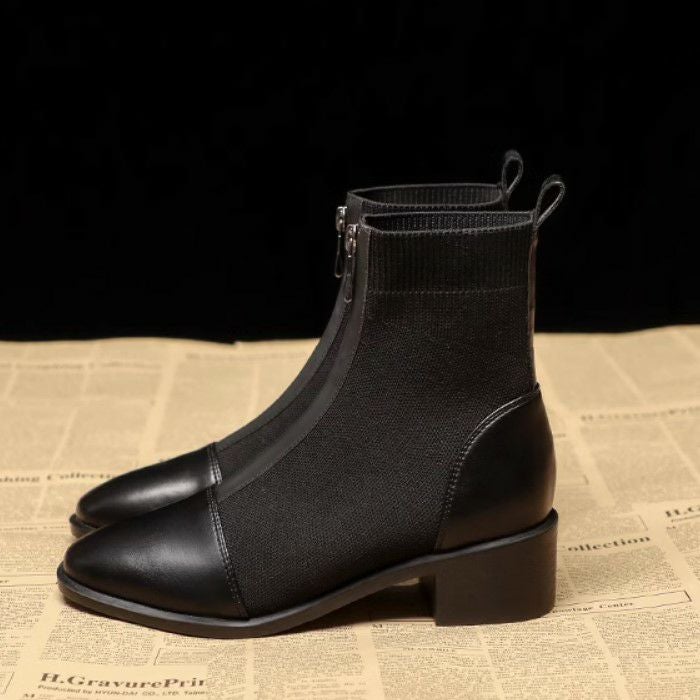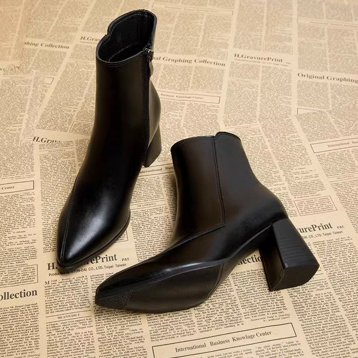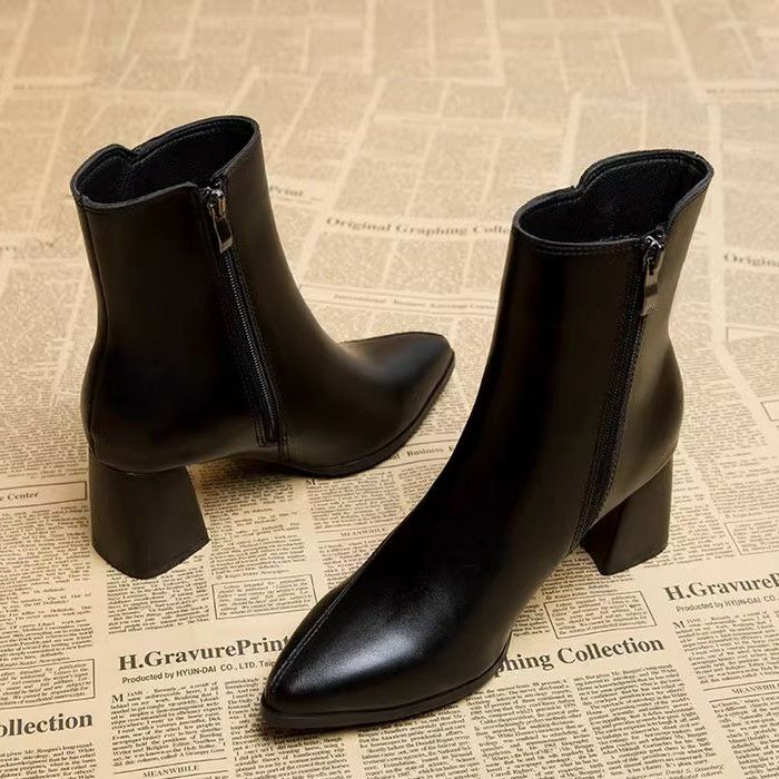 予約 ポインテッドトゥ ちゃんキーヒール ショートブーツ