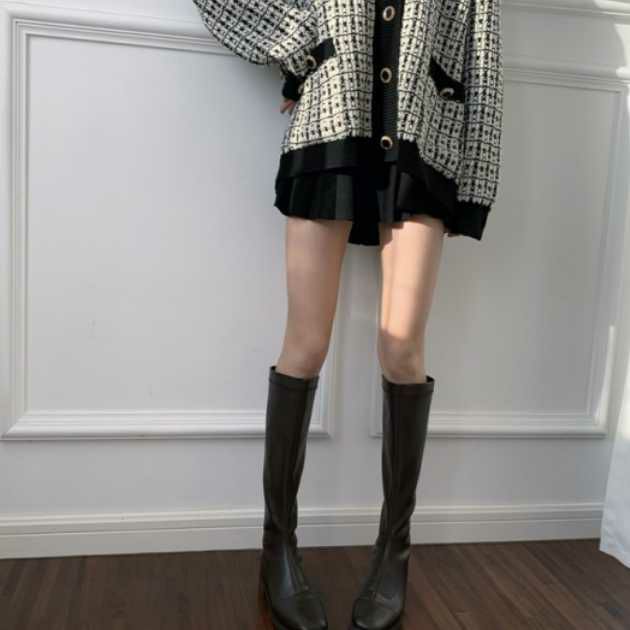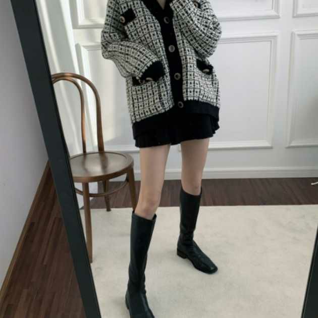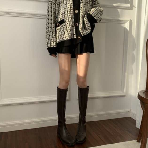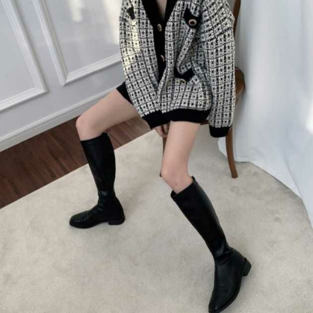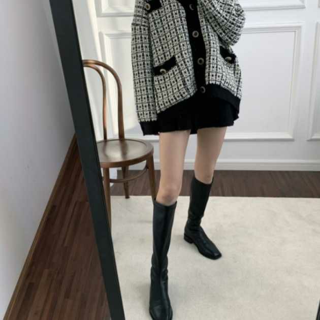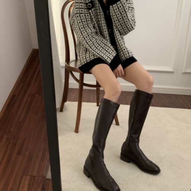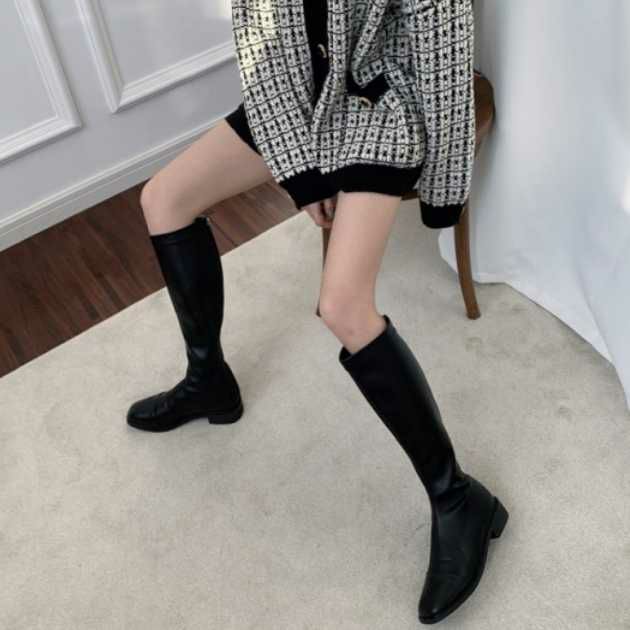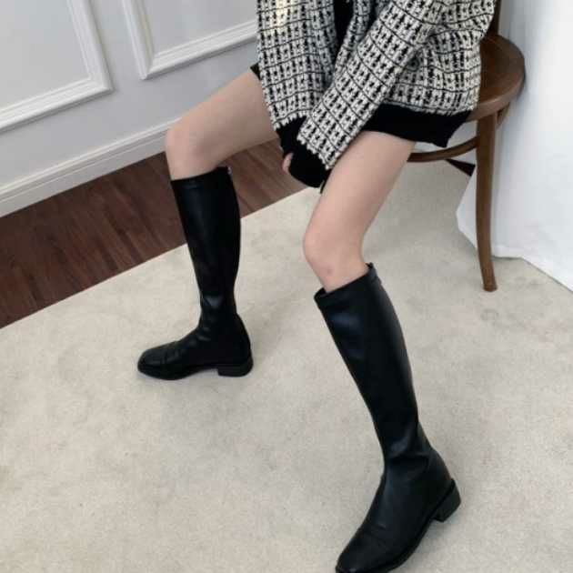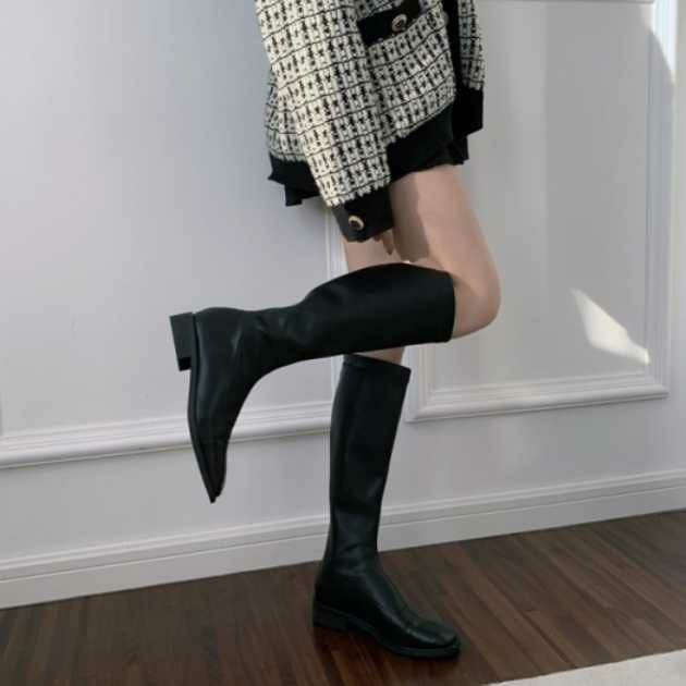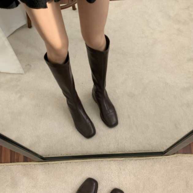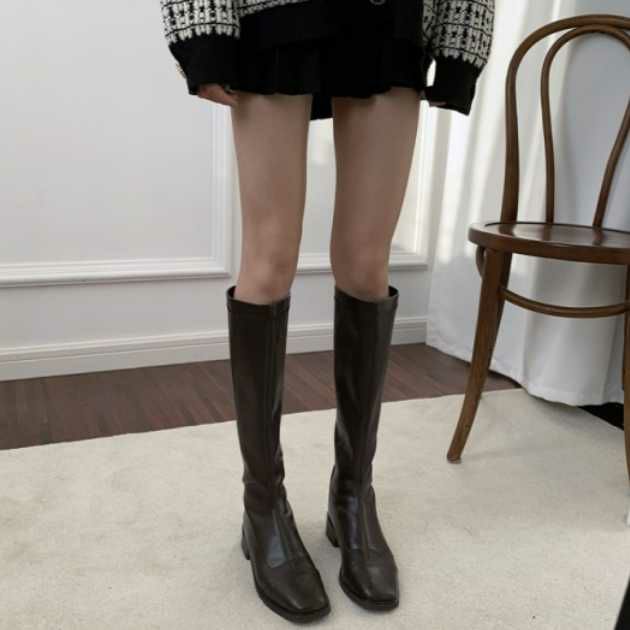 即納 スクエアトゥ シンプル デザイン ロングブーツ heal3cm