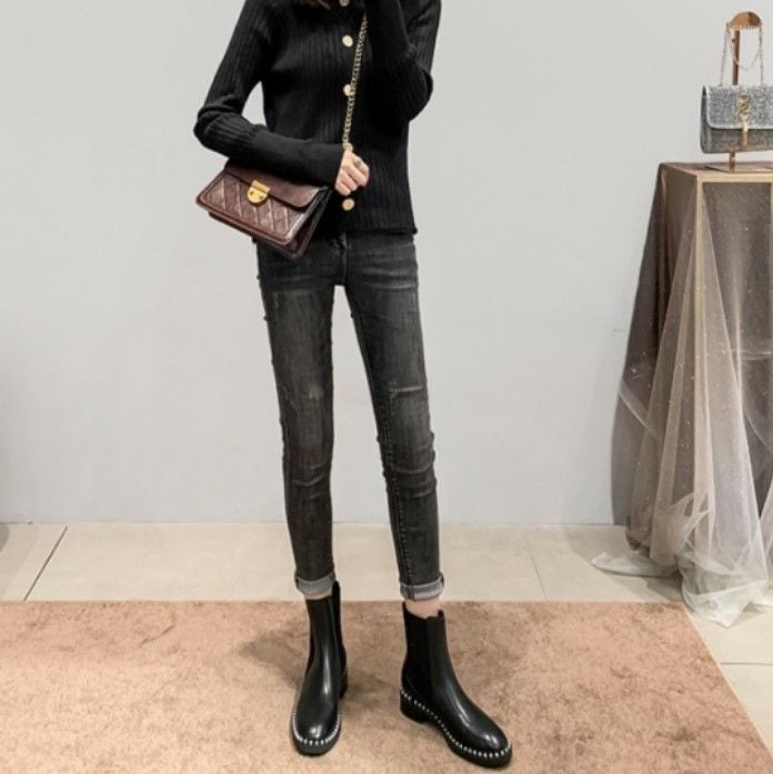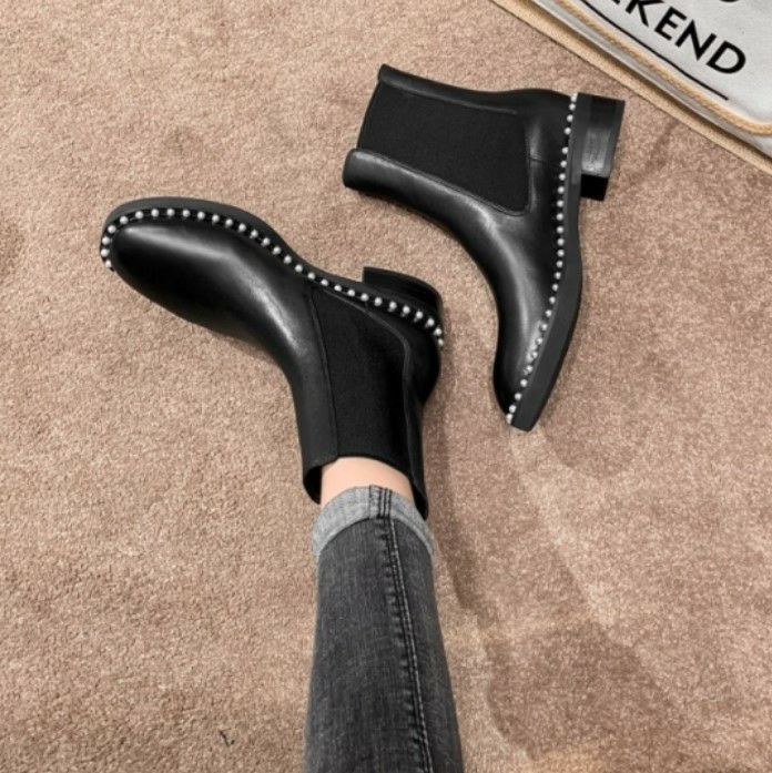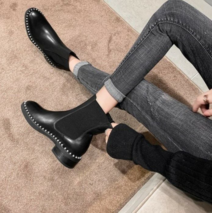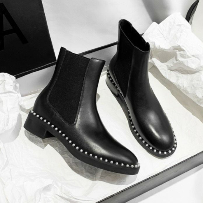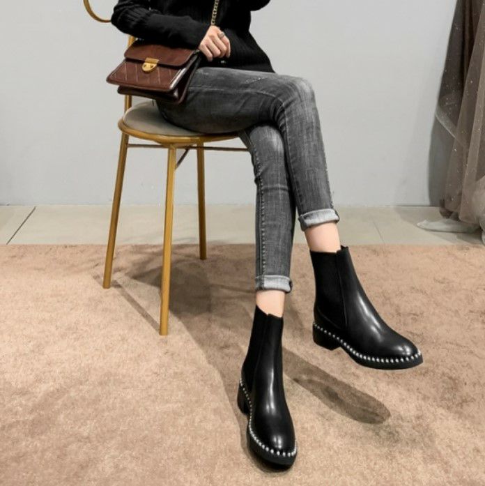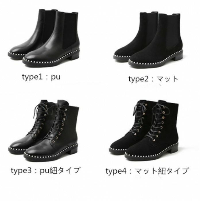 予約* 4type パール ラウンド デザインソール ショートブーツ heel 4cm