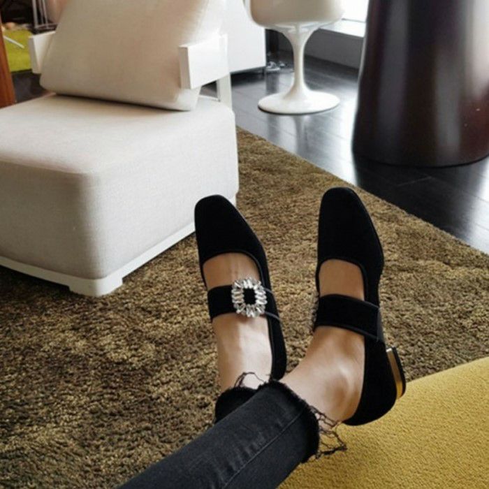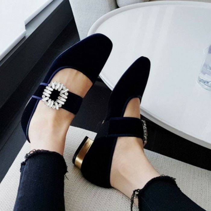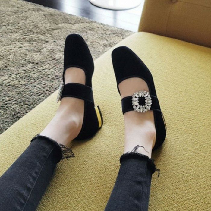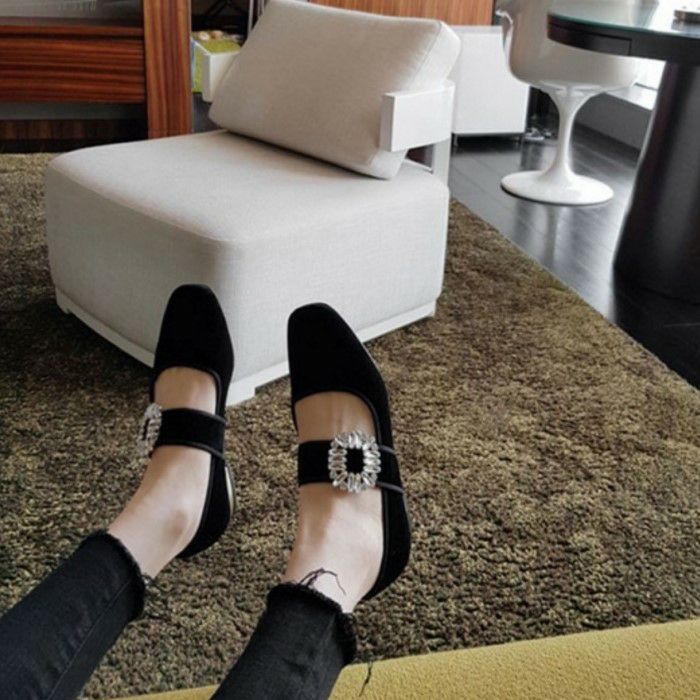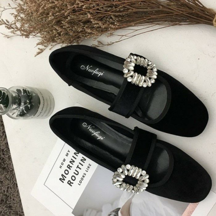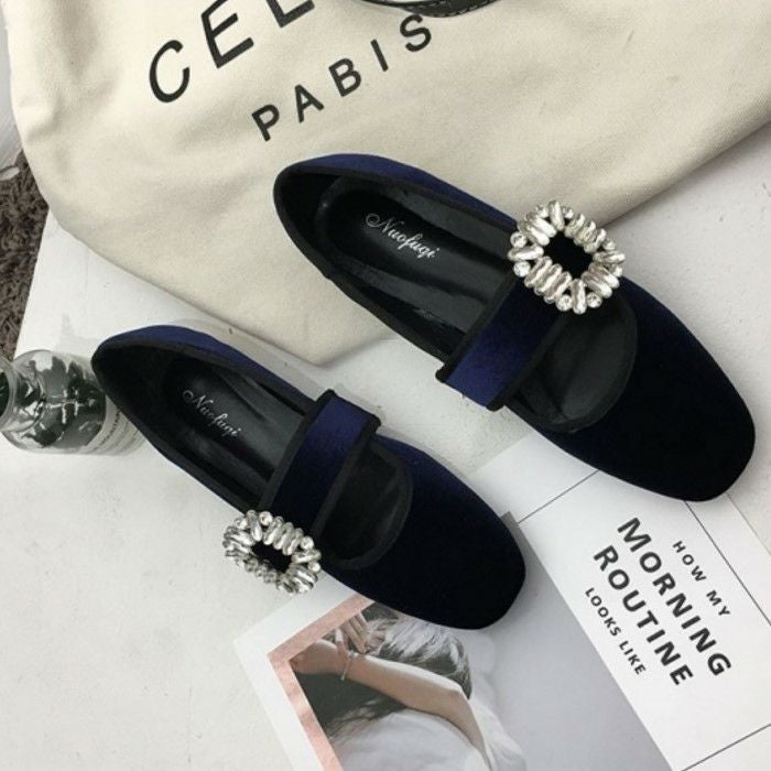 予約* 2color ビジュー ストラップ ローファーシューズ