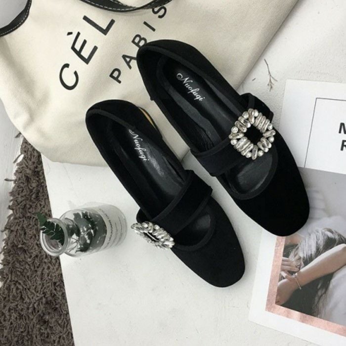 ビジューがポイントのフラットシューズ