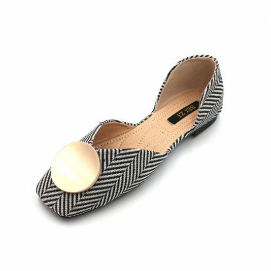 即納 2color ヘリンボーン柄 スクエアトゥ フラットシューズ パンプス