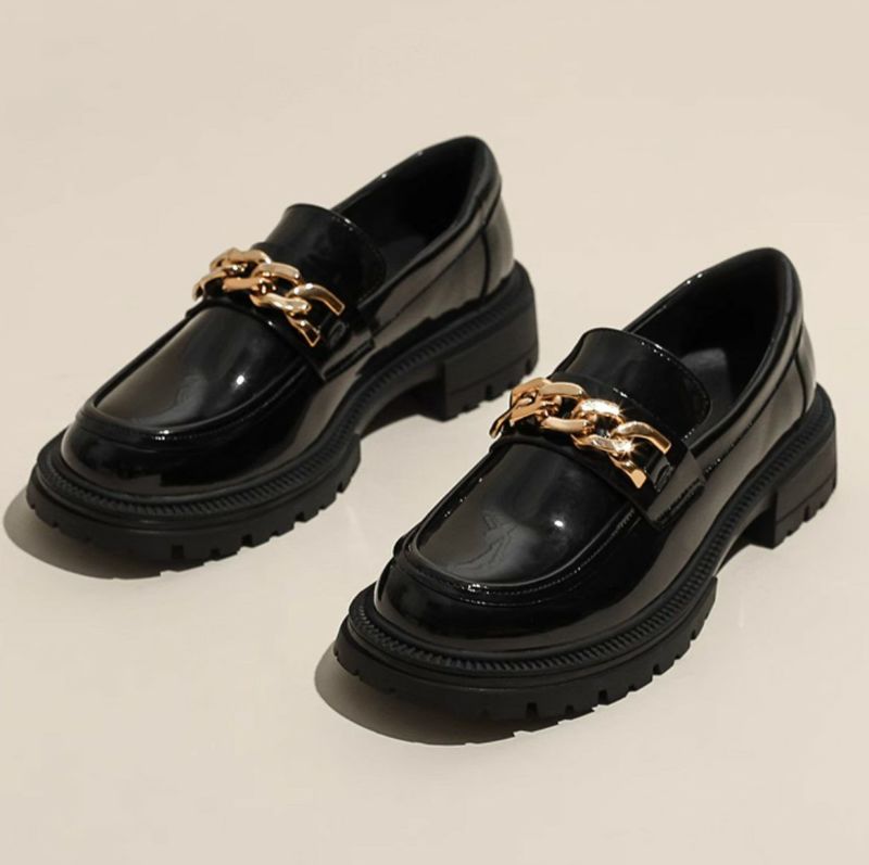 トレンドのチェーンモチーフがモード感をプラスするローファー