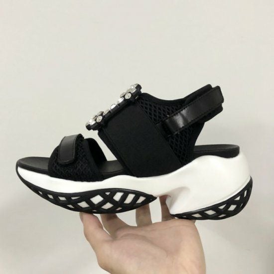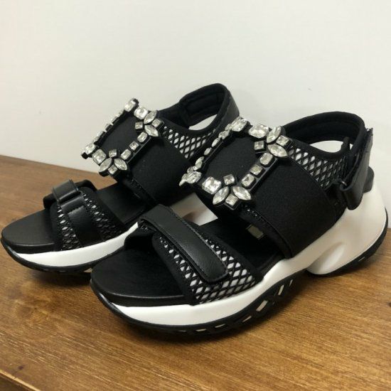3. 一部即納 5color ビッグ ビジュー スポーツサンダル スクエア モチーフ コンフォートサンダル スポサン 厚底 プラットフォーム サンダル