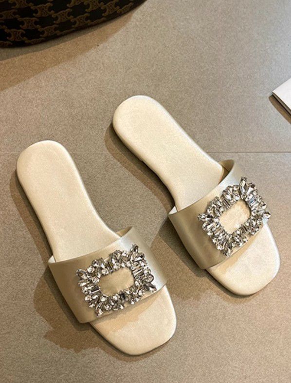 ヒール無しで歩きやすく、華やかながらカジュアルに履ける一足