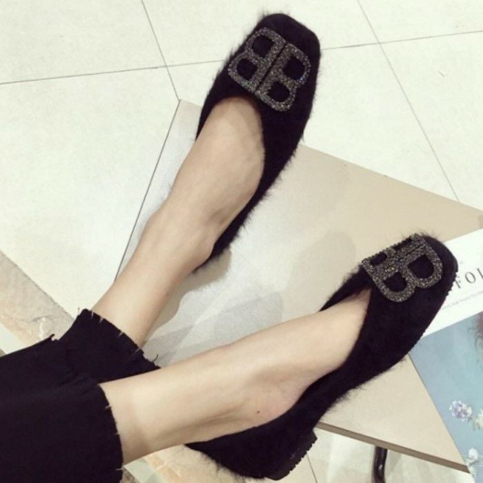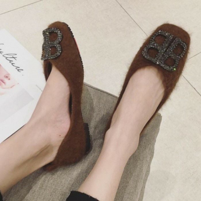 BBのビジューモチーフがポイントとなるフラットシューズ
