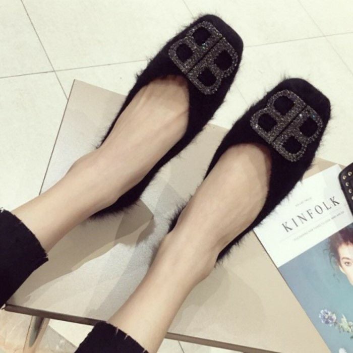 フワフワとした起毛感が可愛い1足ですが、ラウンドトゥでカジュアルな雰囲気もプラスし