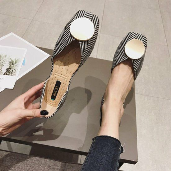 即納 2color ヘリンボーン柄 スクエアトゥ フラットシューズ パンプス