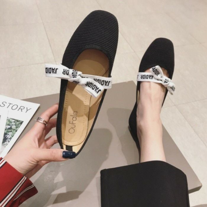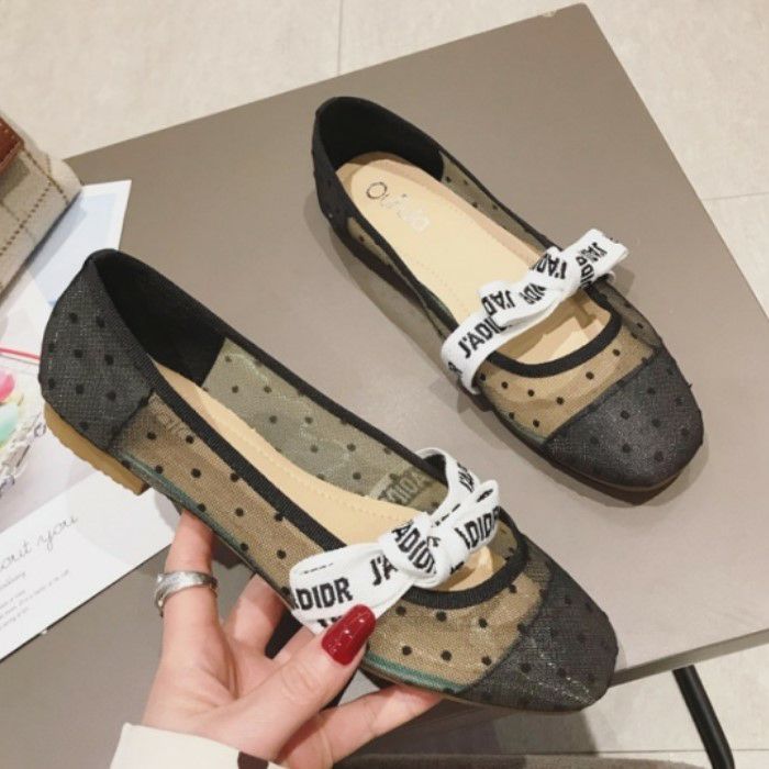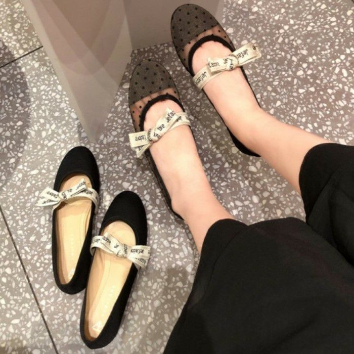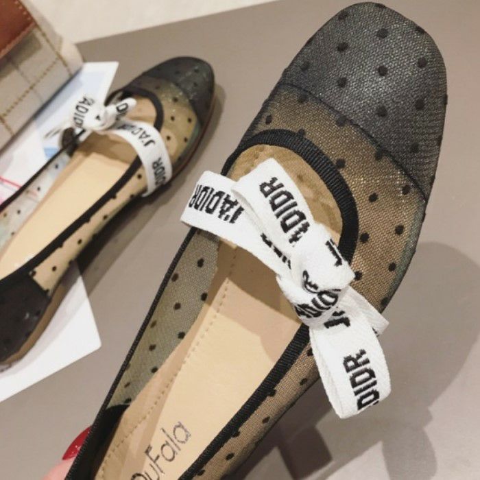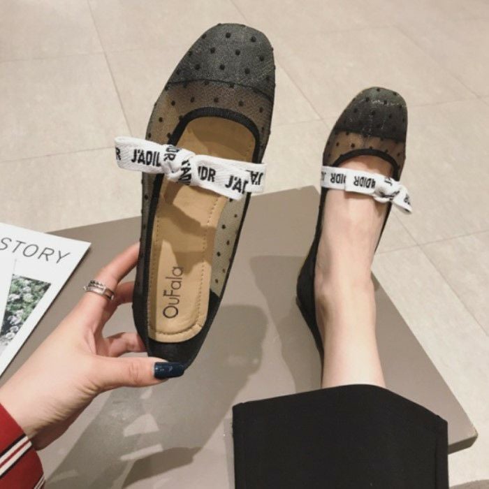 予約* 2color レタリング リボン シースルー ドット フラットシューズ