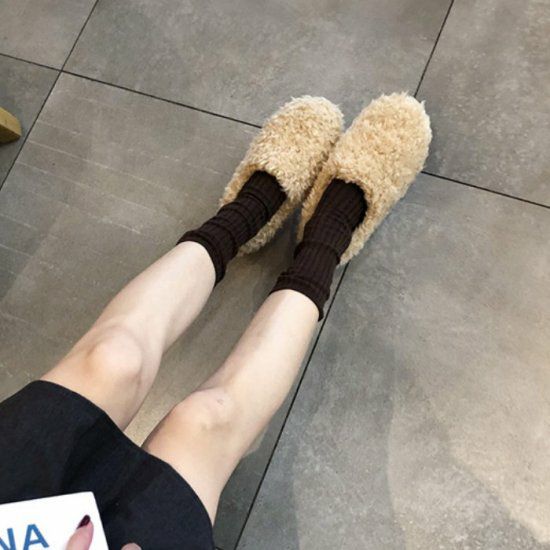 即納 *ボア ファー フラットシューズ