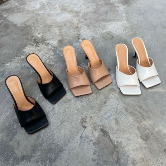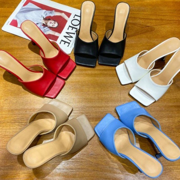 予約* 5color スクエアトゥ ワンカラー ミュール 8cm heel