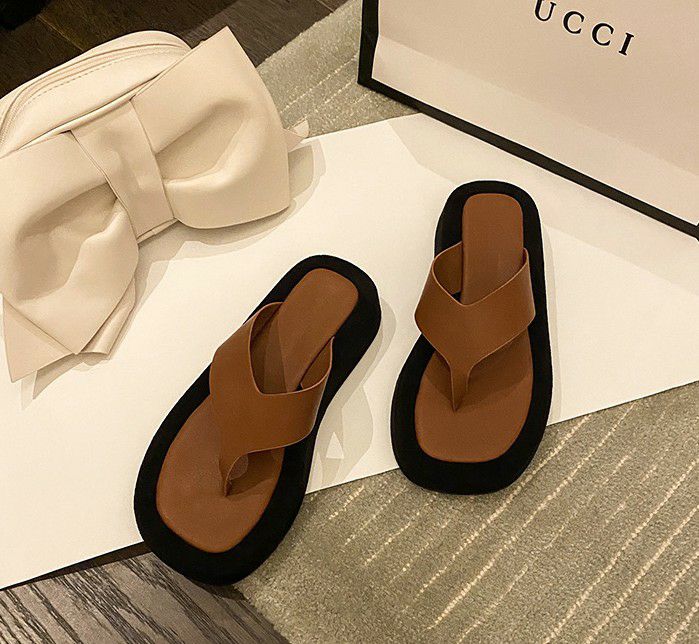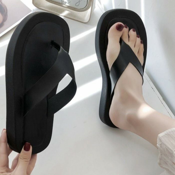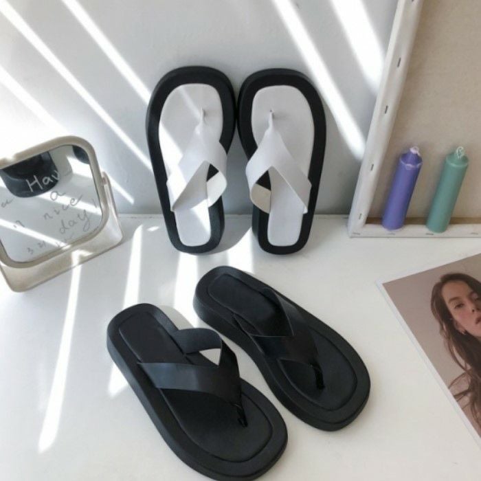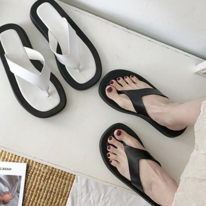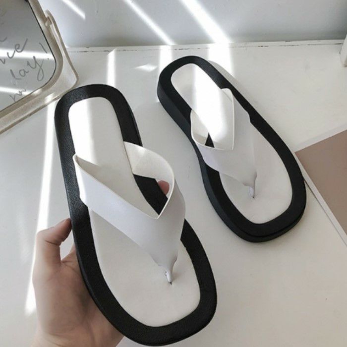 シンプルなバイカラーが目を惹くデザインの厚底ビーチサンダル