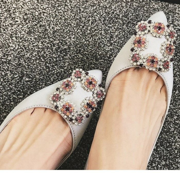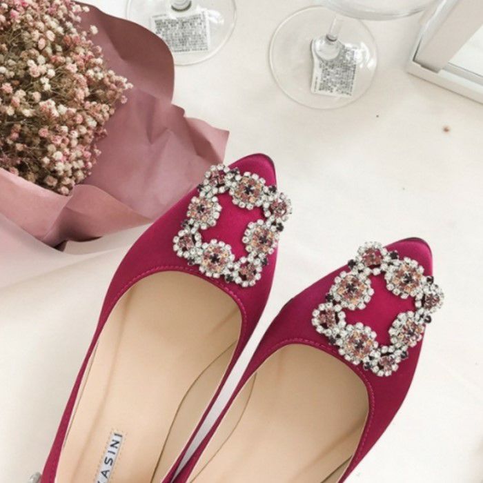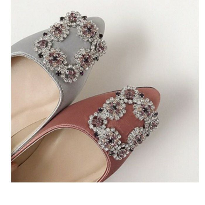 即納* 4color ビジュー付き スクエアモチーフ フラットヒール