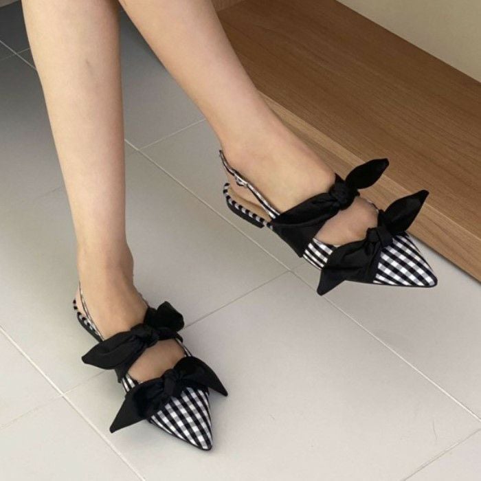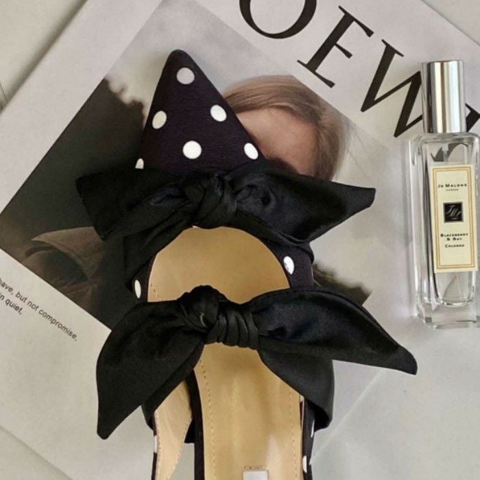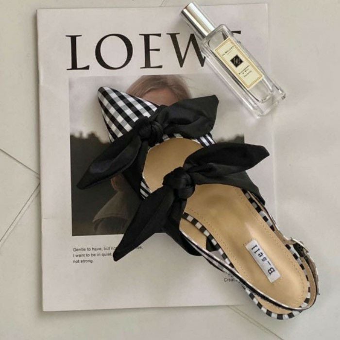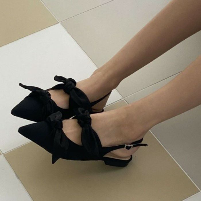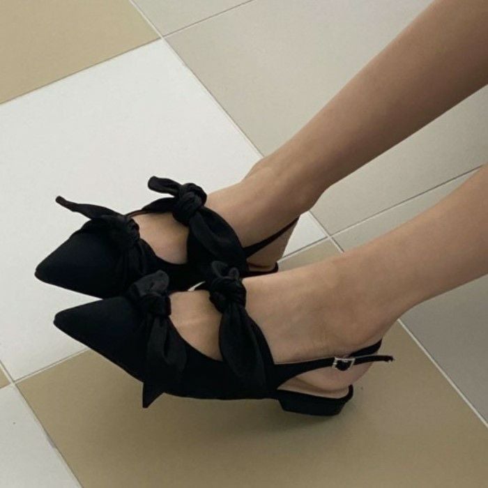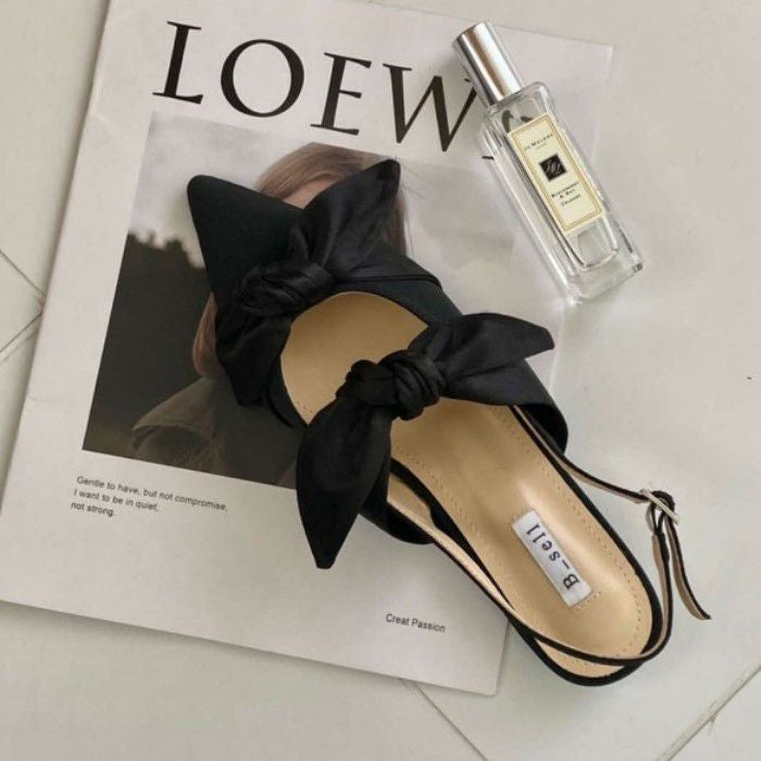 即納 3color ダブルリボン フラット バックストラップ サンダル