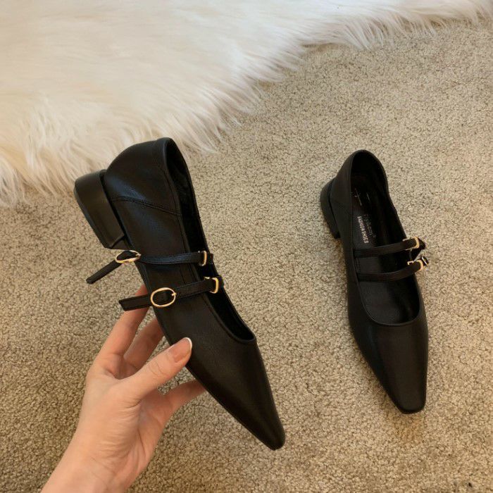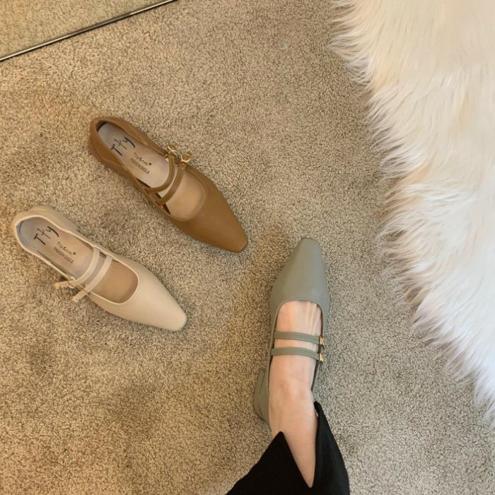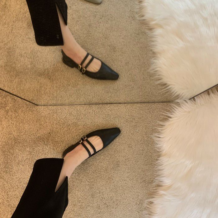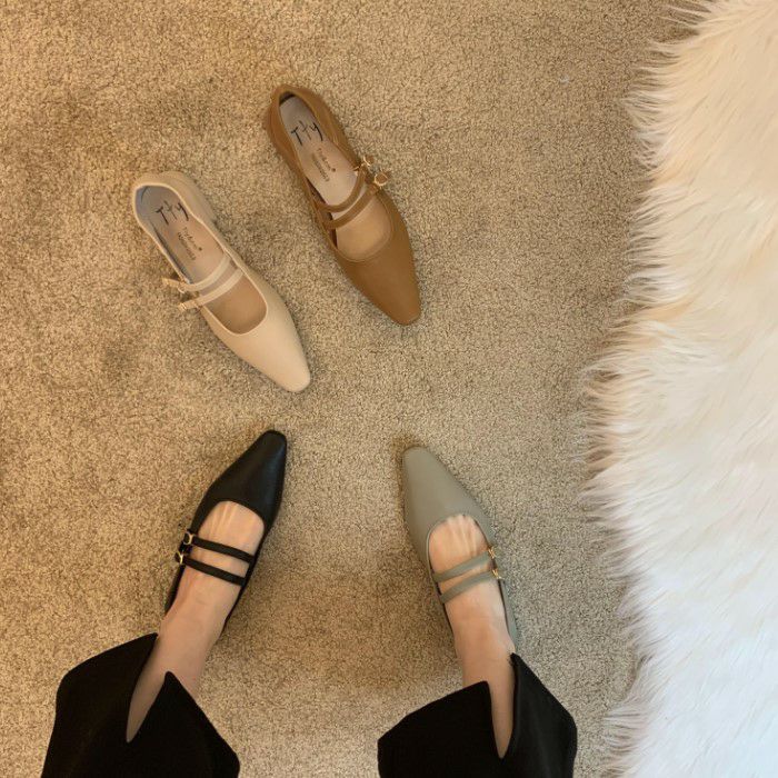 予約4color ダブルストラップ フラット パンプス