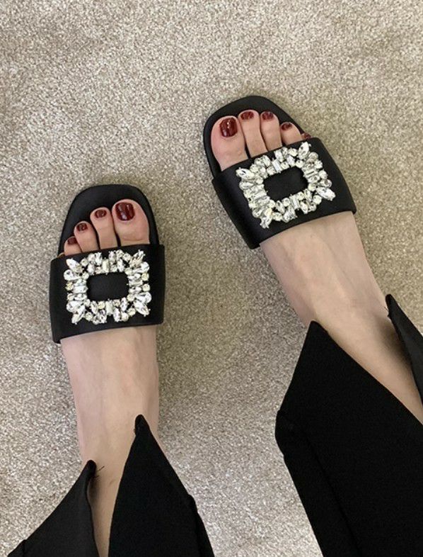 予約 4color ビジュー フラット ミュール