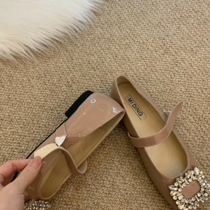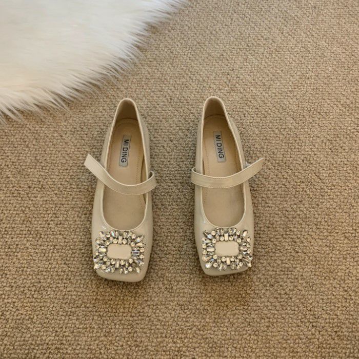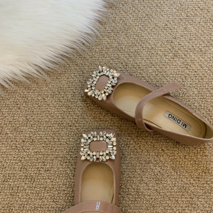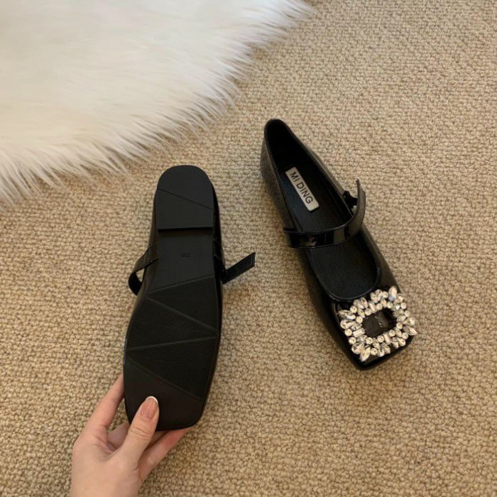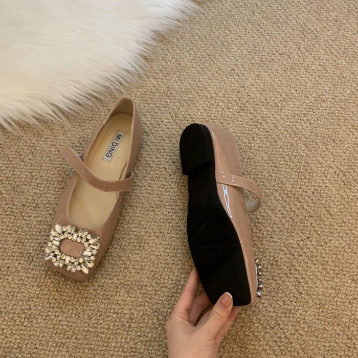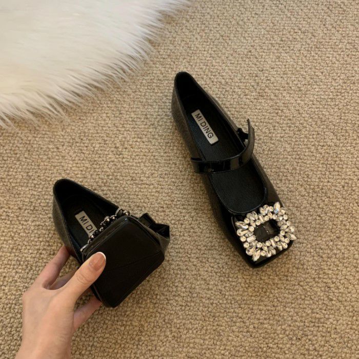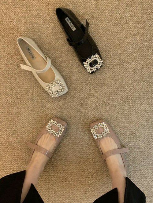 一部即納 3color ストラップ スクエアトゥ ビジュー フラット パンプス