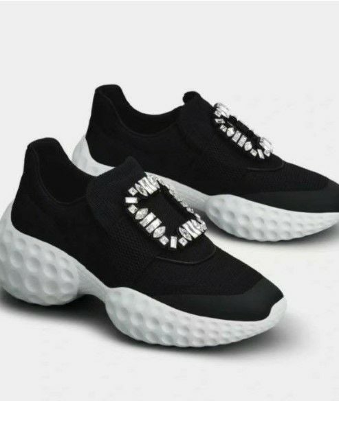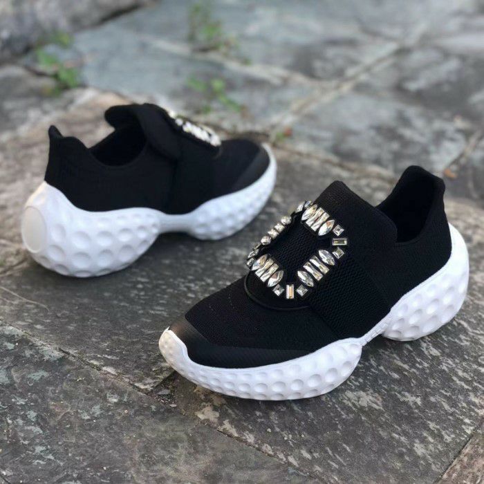 予約 3color スクエア ビジュー 厚底 スニーカー