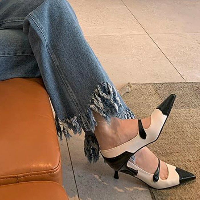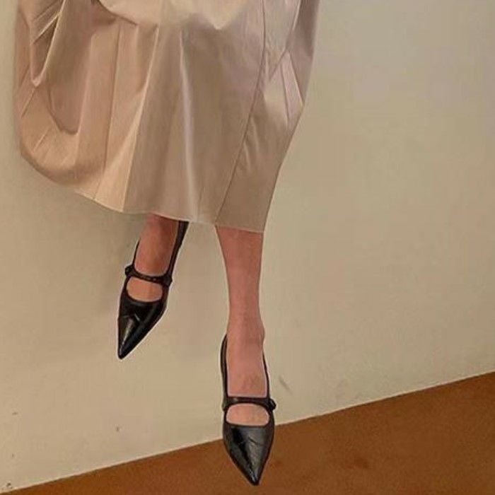 ウィングチップに華奢なストラップがデザインされたパンプス