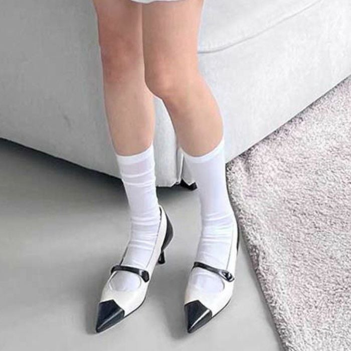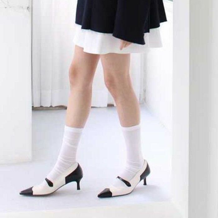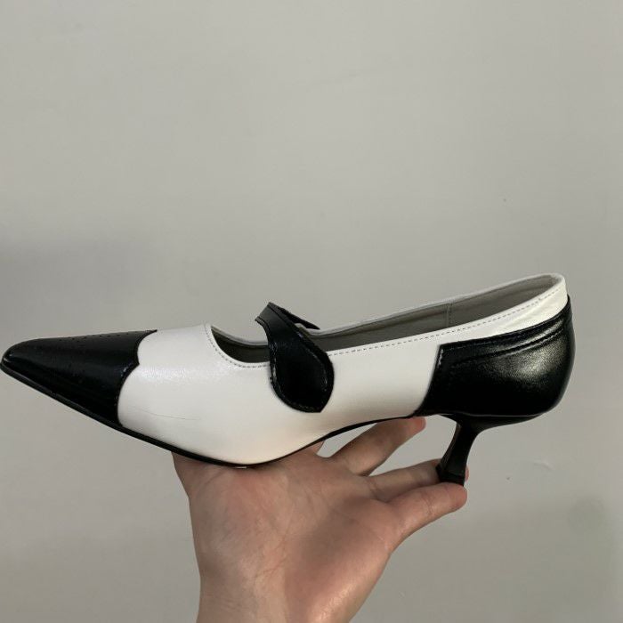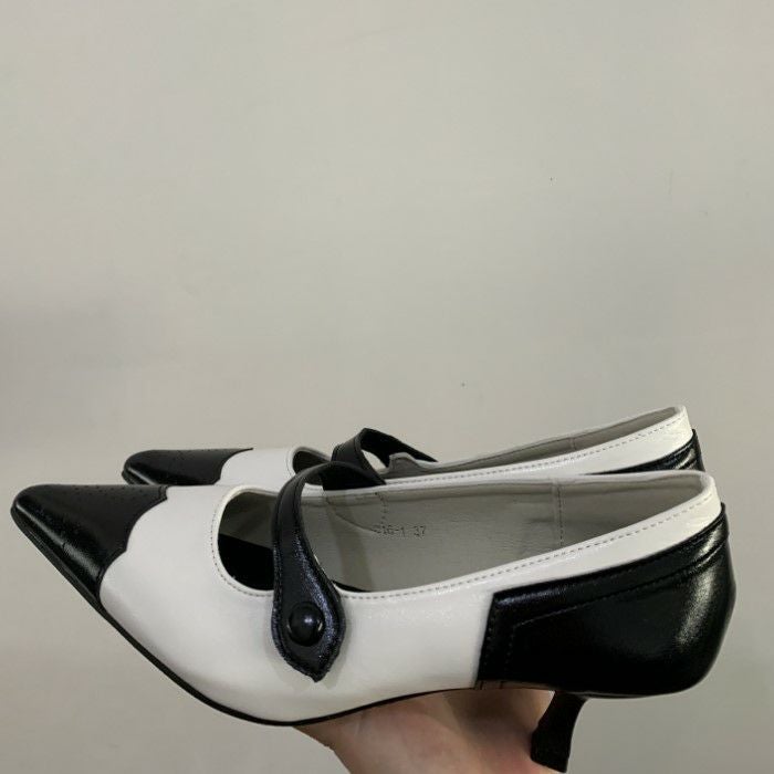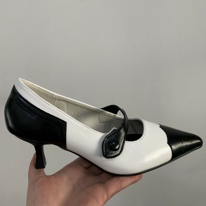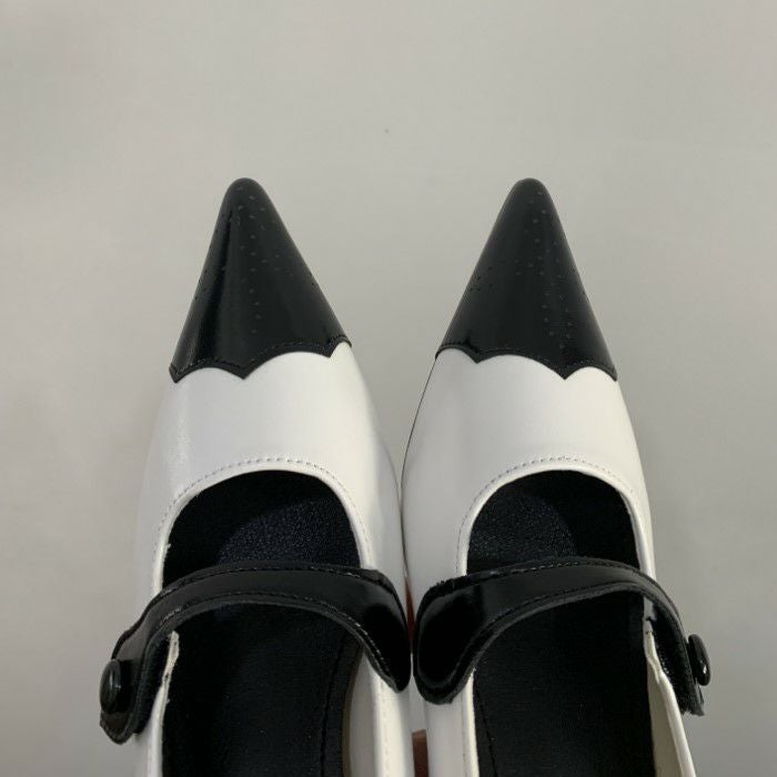予約 2color ウィングチップ ストラップ バイカラー パンプス heel 5cm