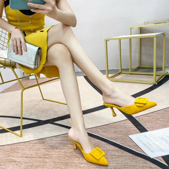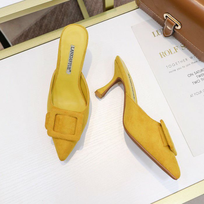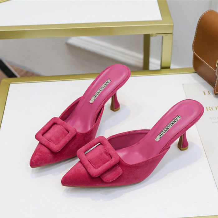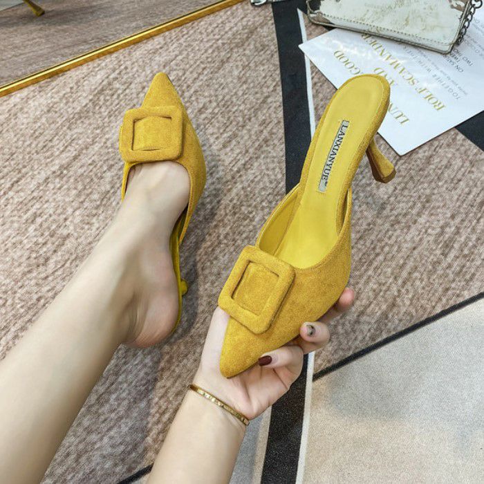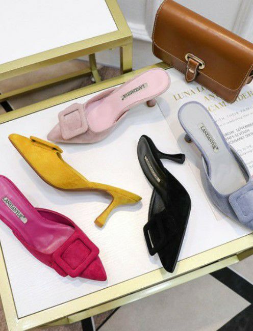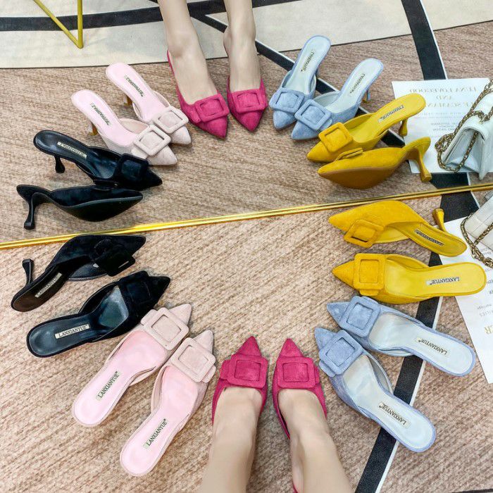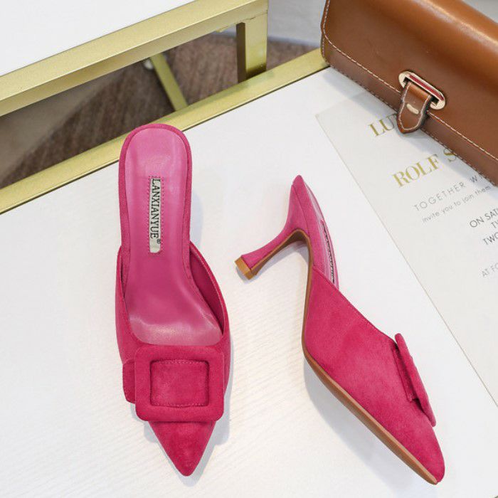 予約 5color スエード カラー バックル ミュール heel 7cm