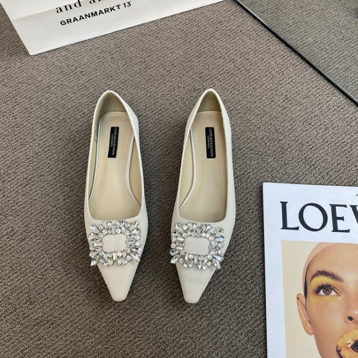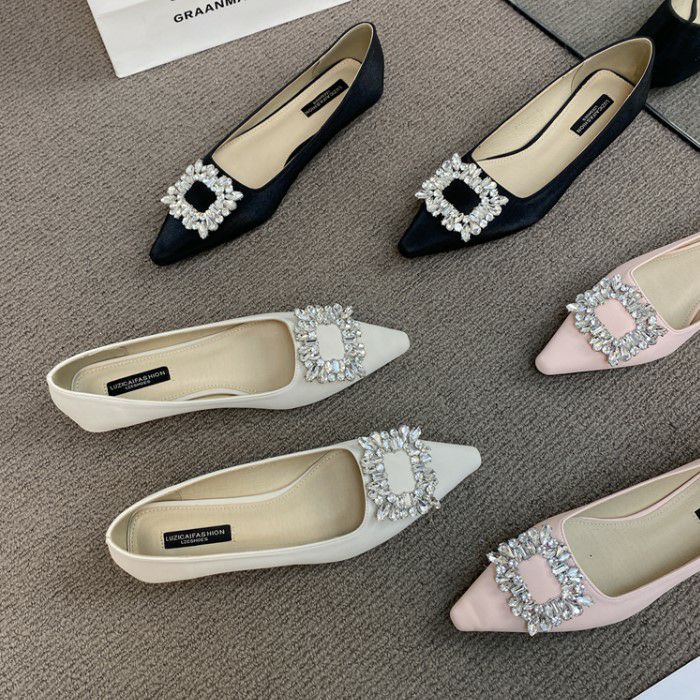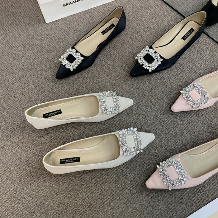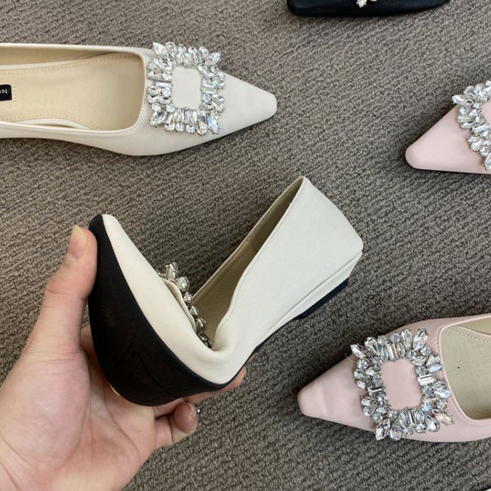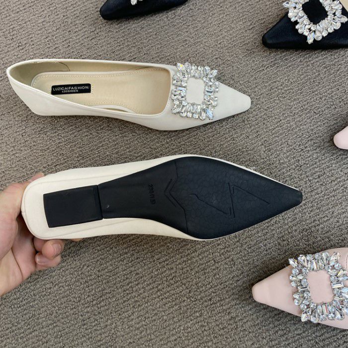 予約 3color ビジュー ポインテッドトゥ フラット パンプス heel 2cm