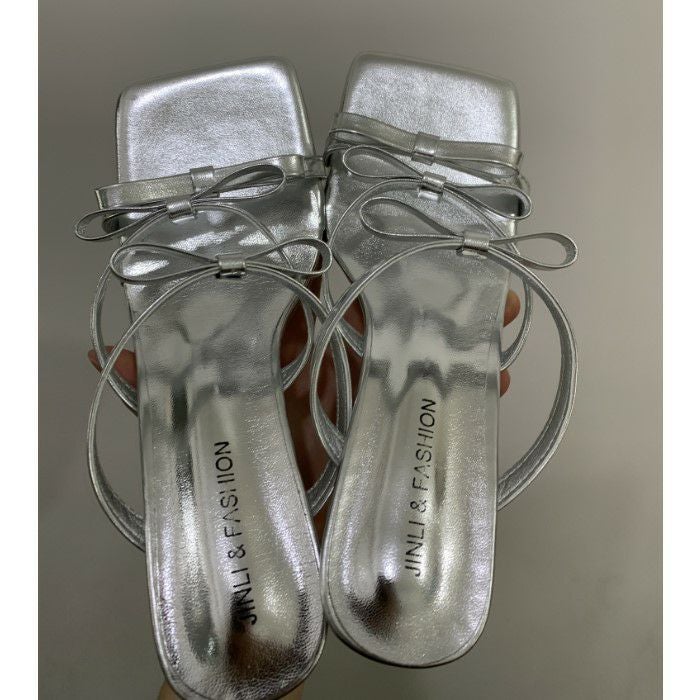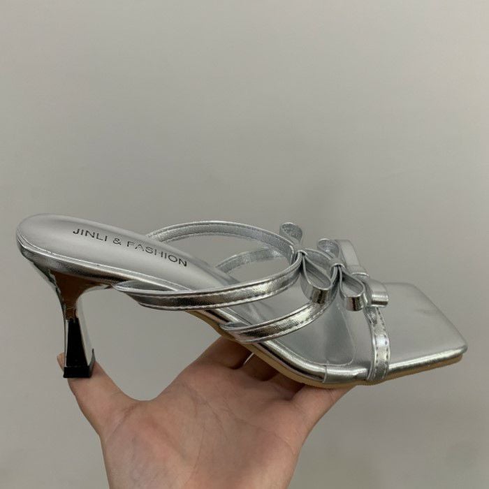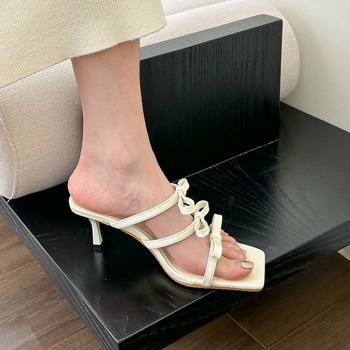 即納 3color Mini Ribbon スクエアトゥ ミュール 7cm