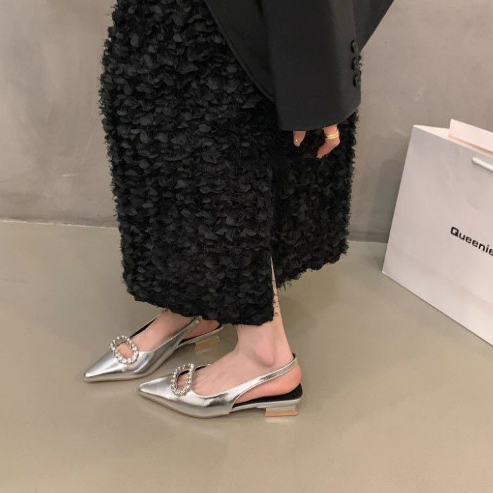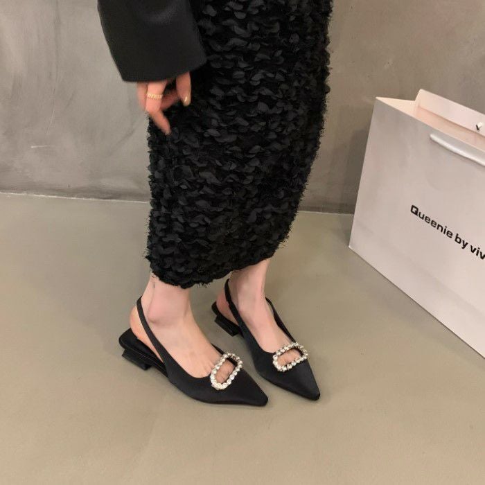 予約 2color Zero bijou フラット バックストラップ シューズ heel3.5cm