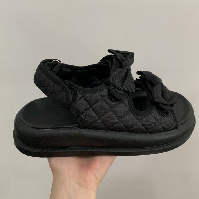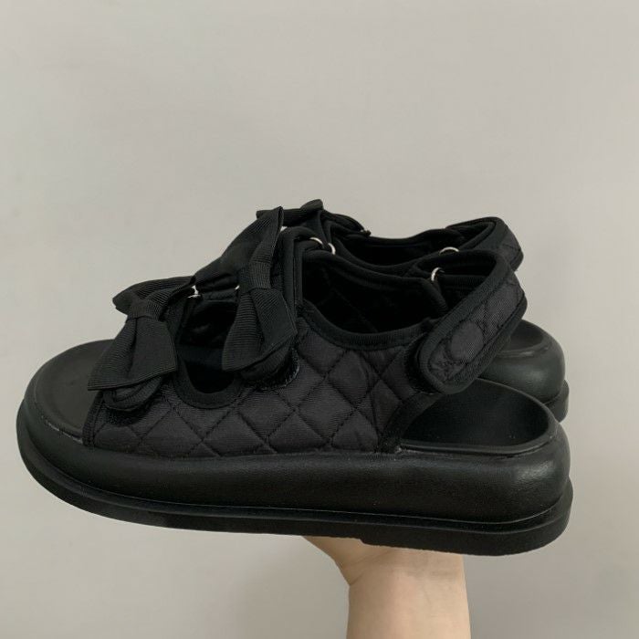 予約 Ribbon キルティング ダブル ベルト サンダル