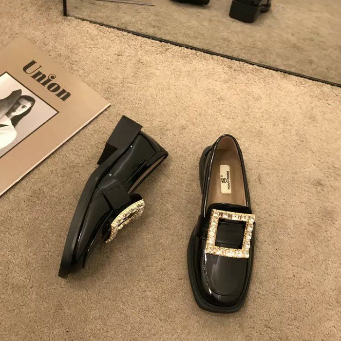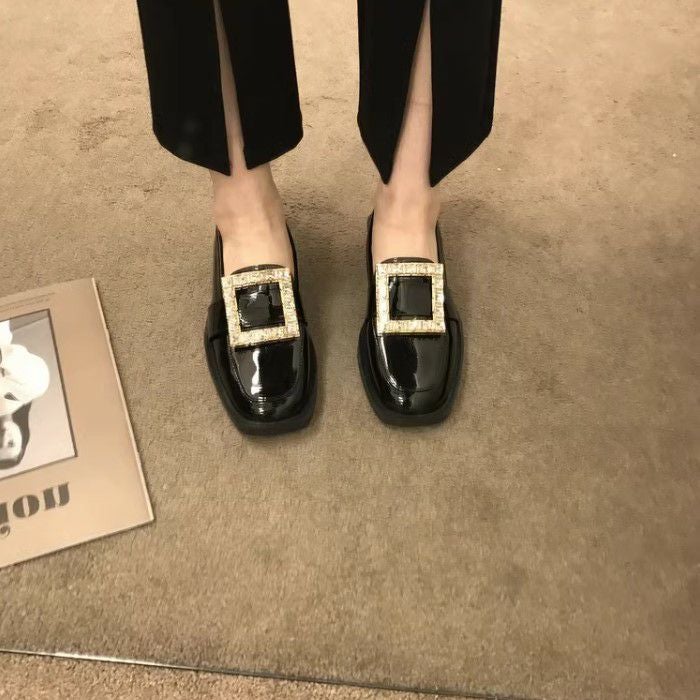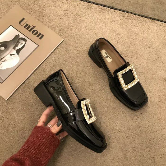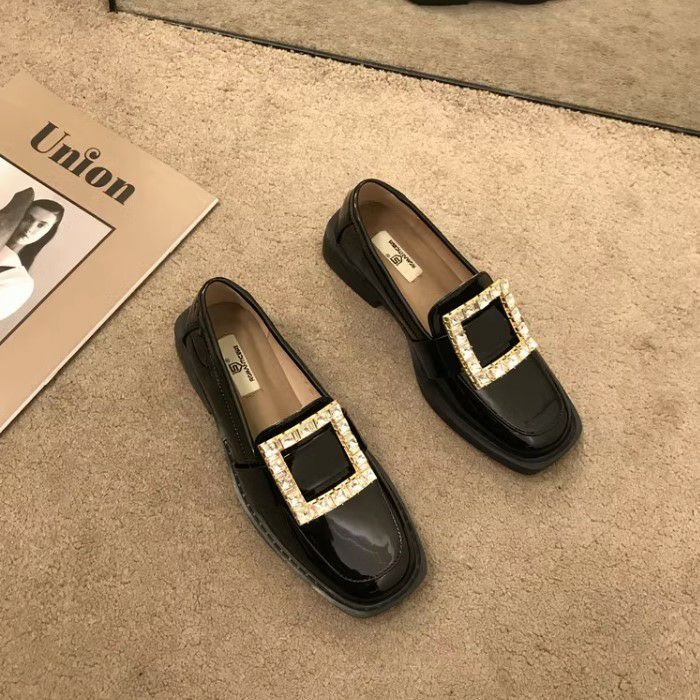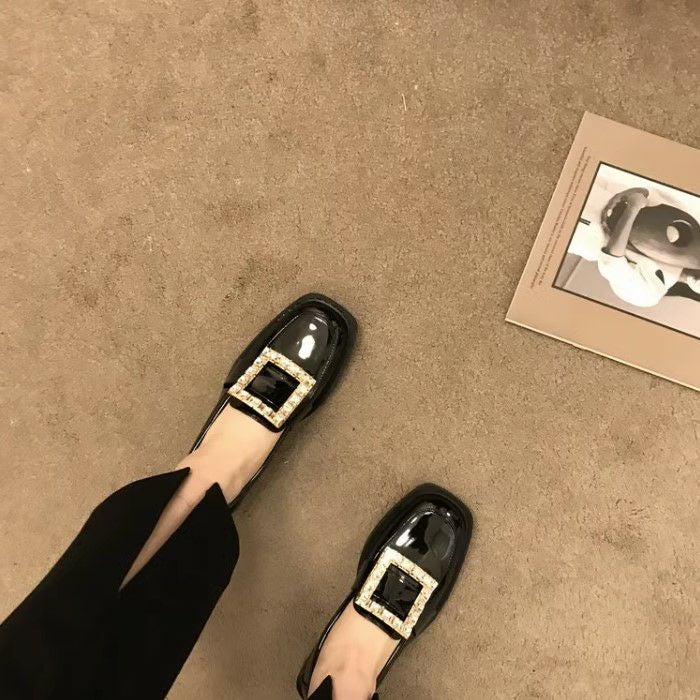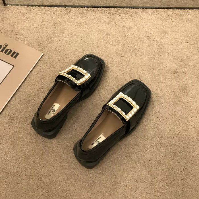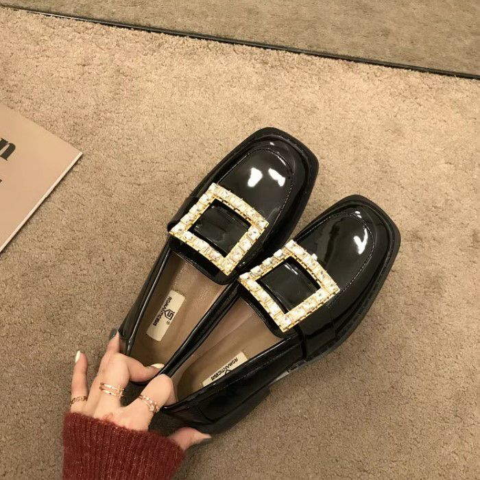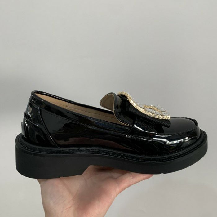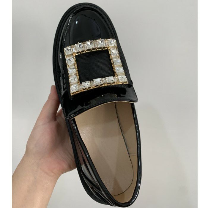 予約 スクエア ビジュー パテント ローファー