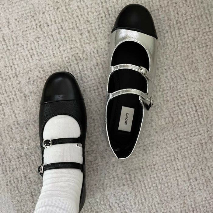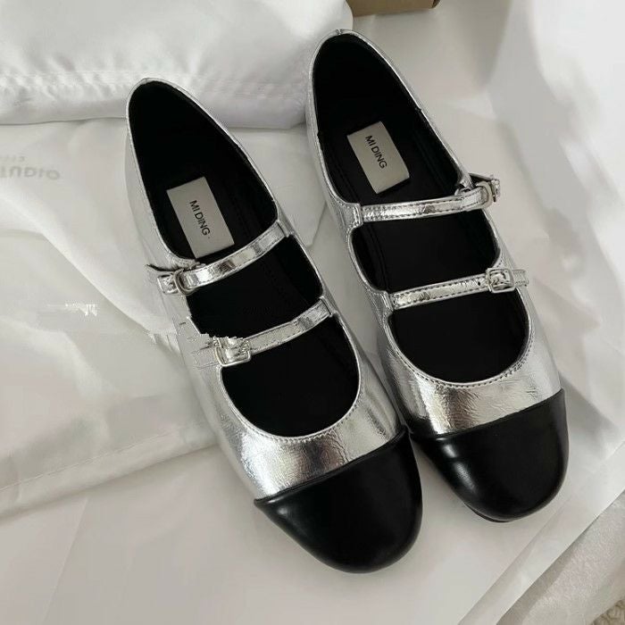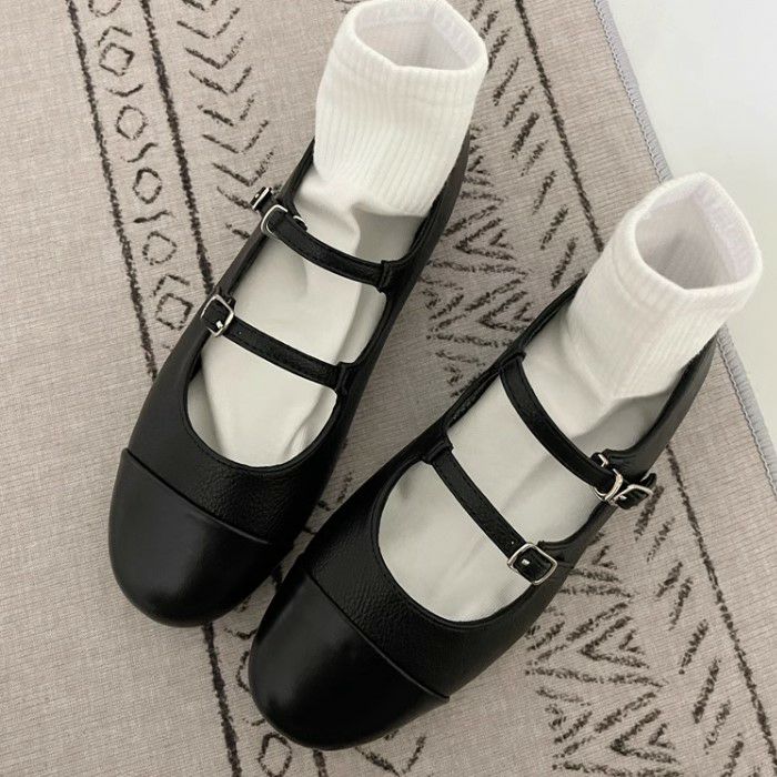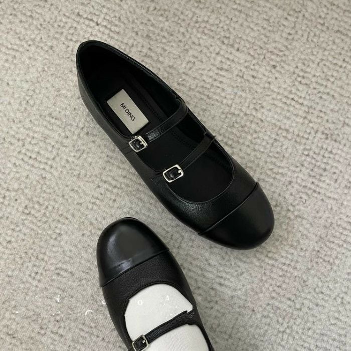 ラウンドトゥでバレエシューズのような雰囲気も併せ持つデザイン