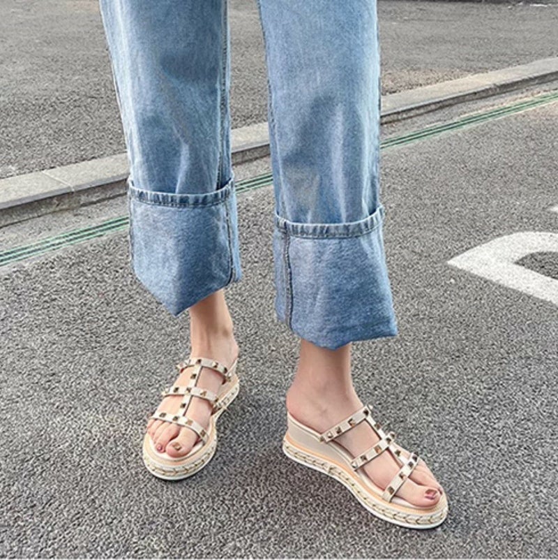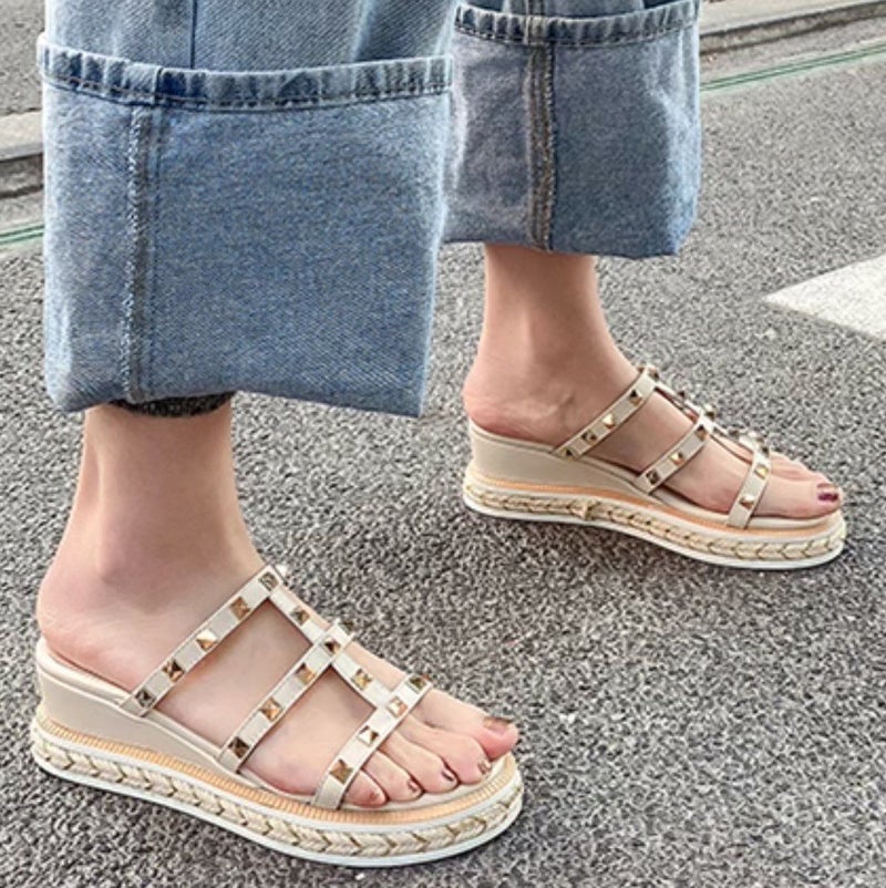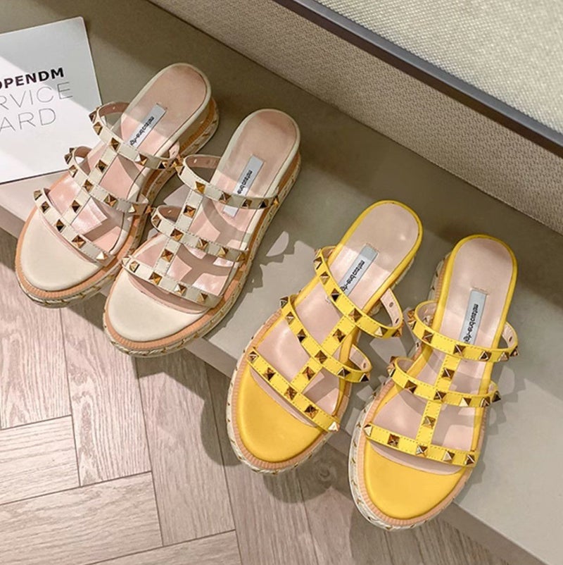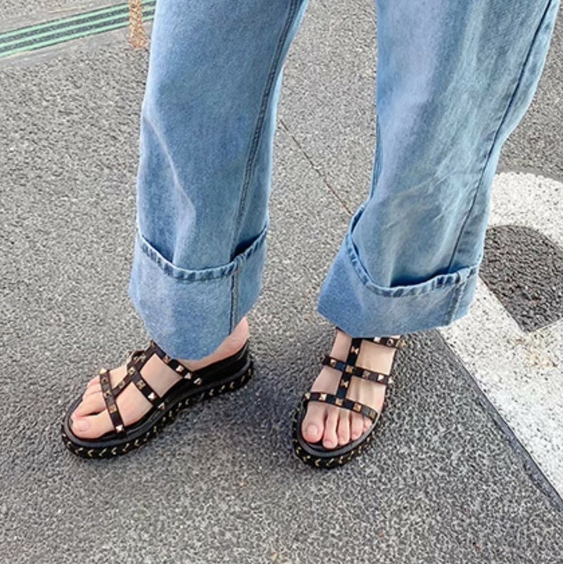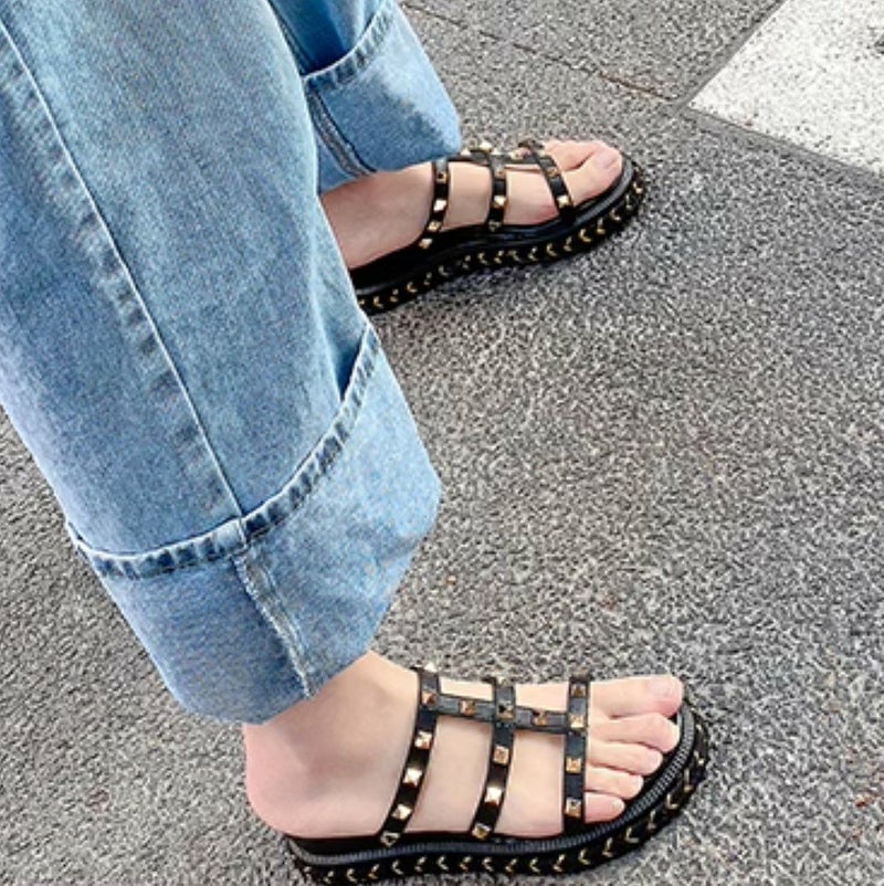 ピラミッドスタッズが可愛い厚底ミュール