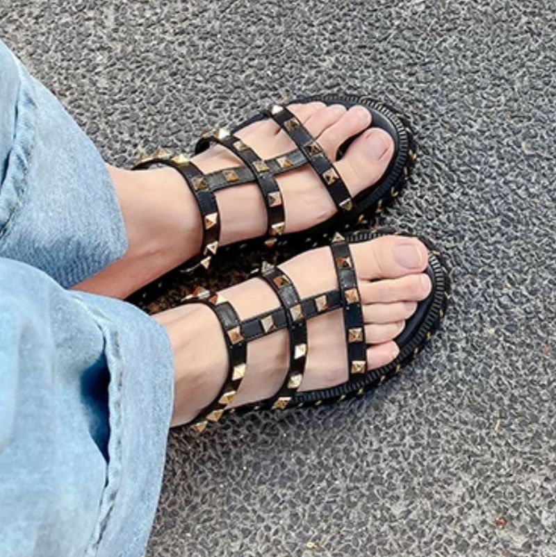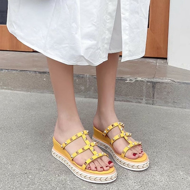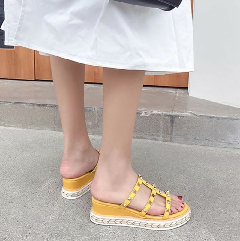 予約 3color ピラミッドスタッズ ウェッジソール ミュール ヒール 5㎝