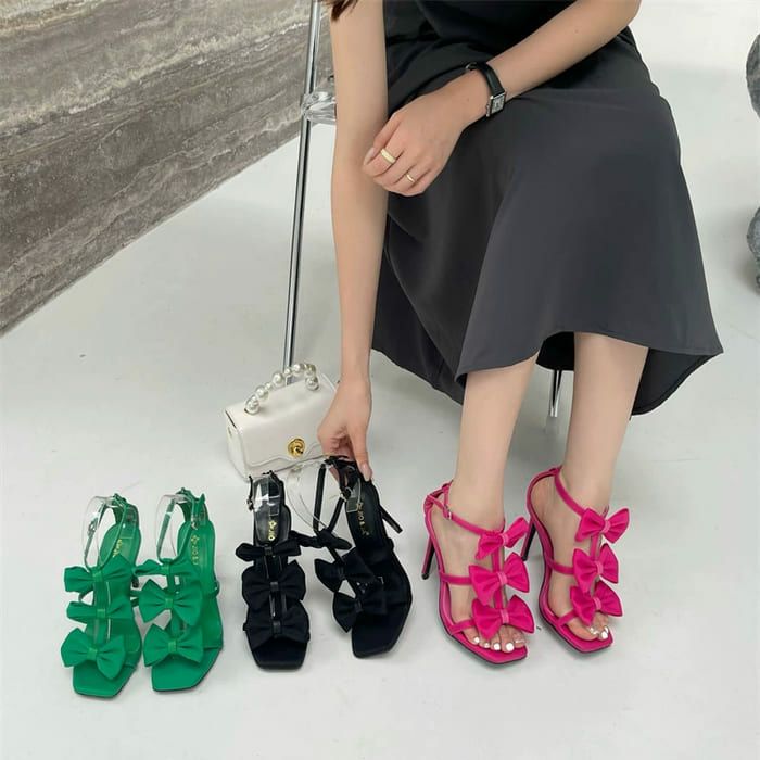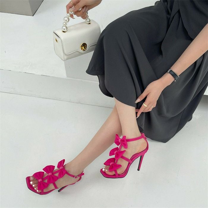 予約 ワンライン リボン ヒール サンダル