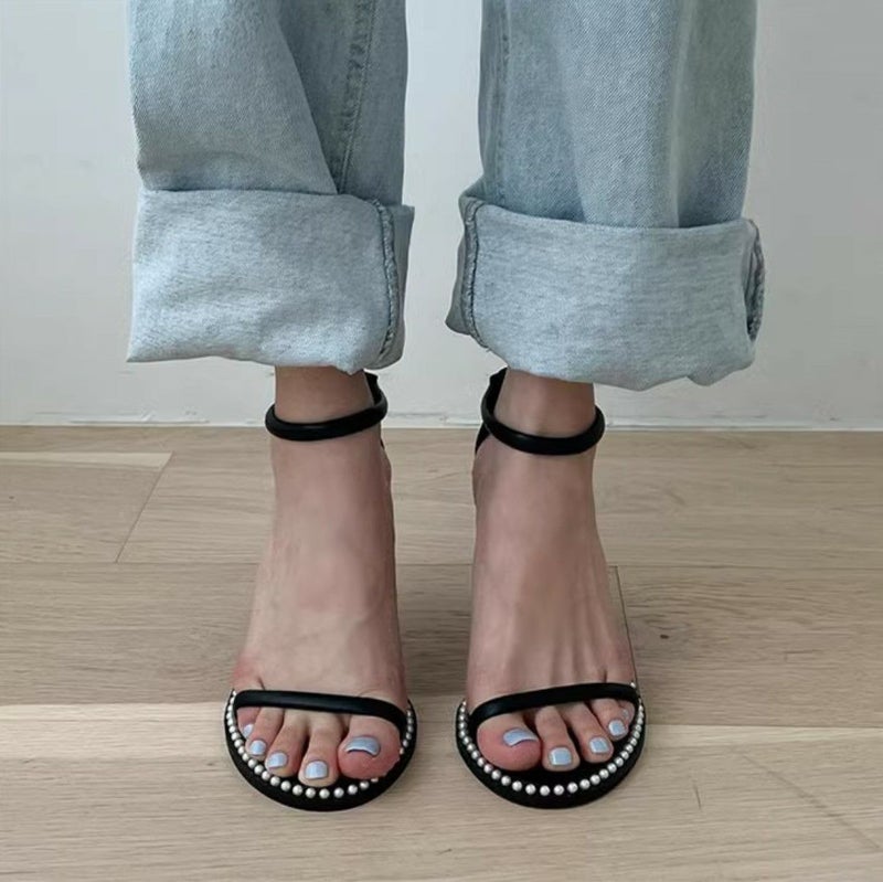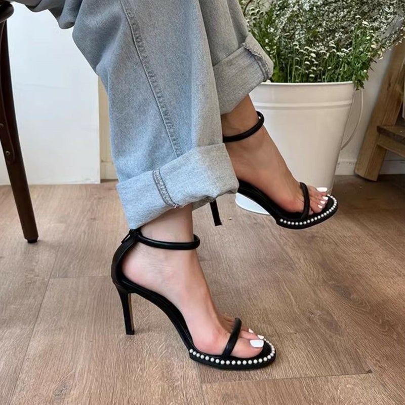 パールがドット状にデザインされたサンダル