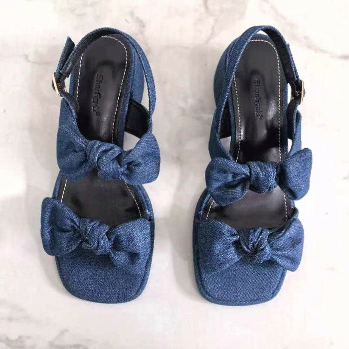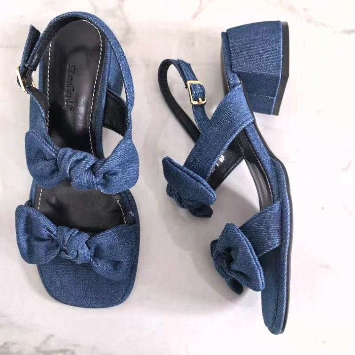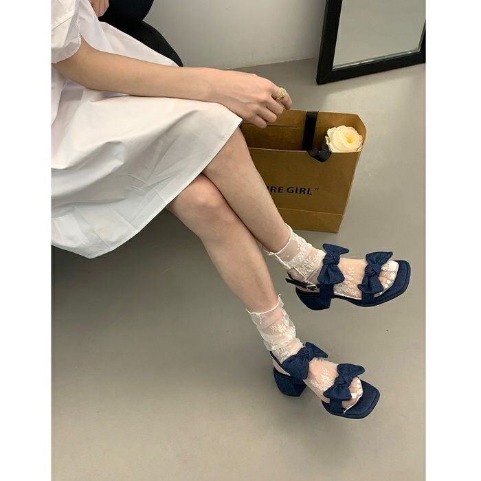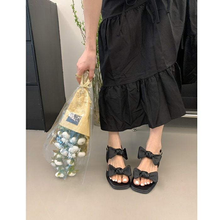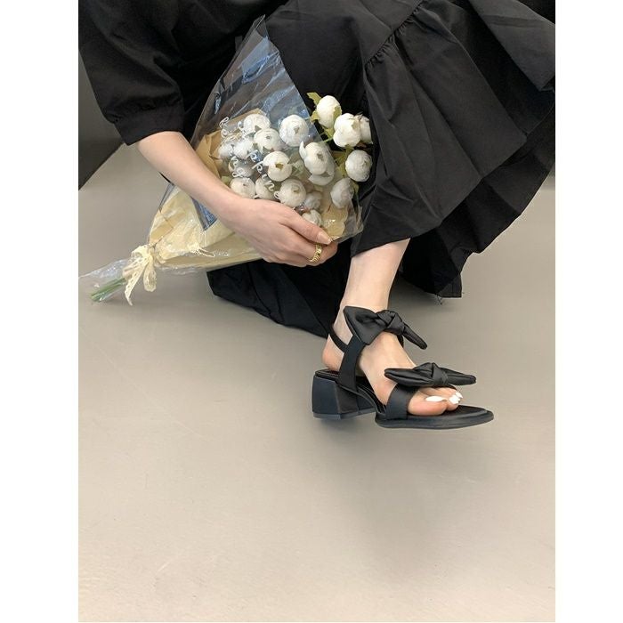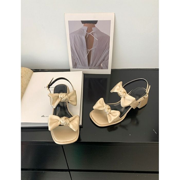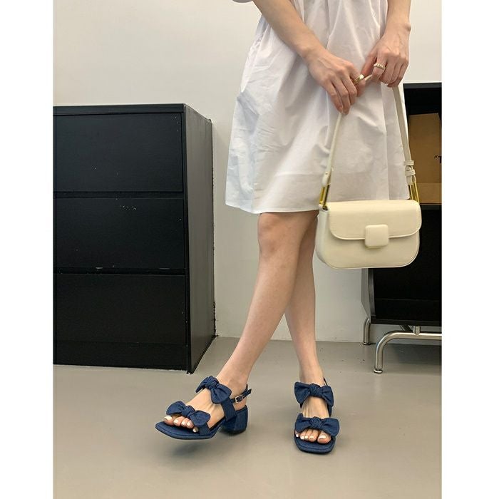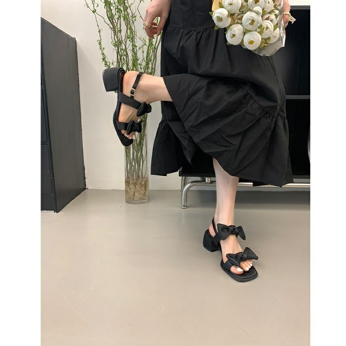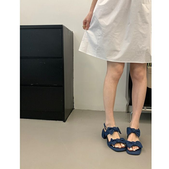 RIBBONモチーフがカジュアル可愛いチャンキーヒールサンダル