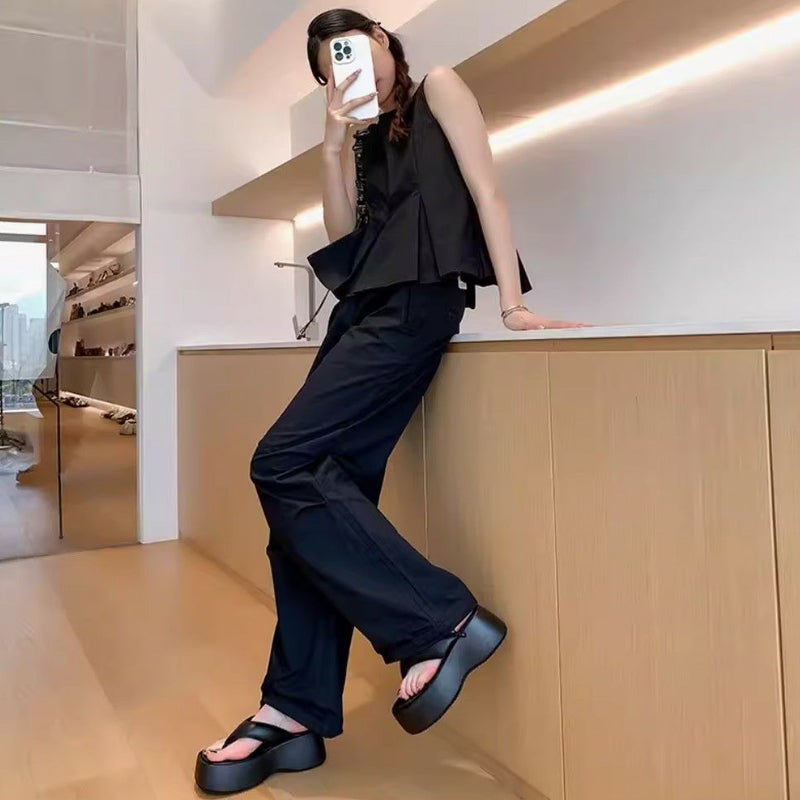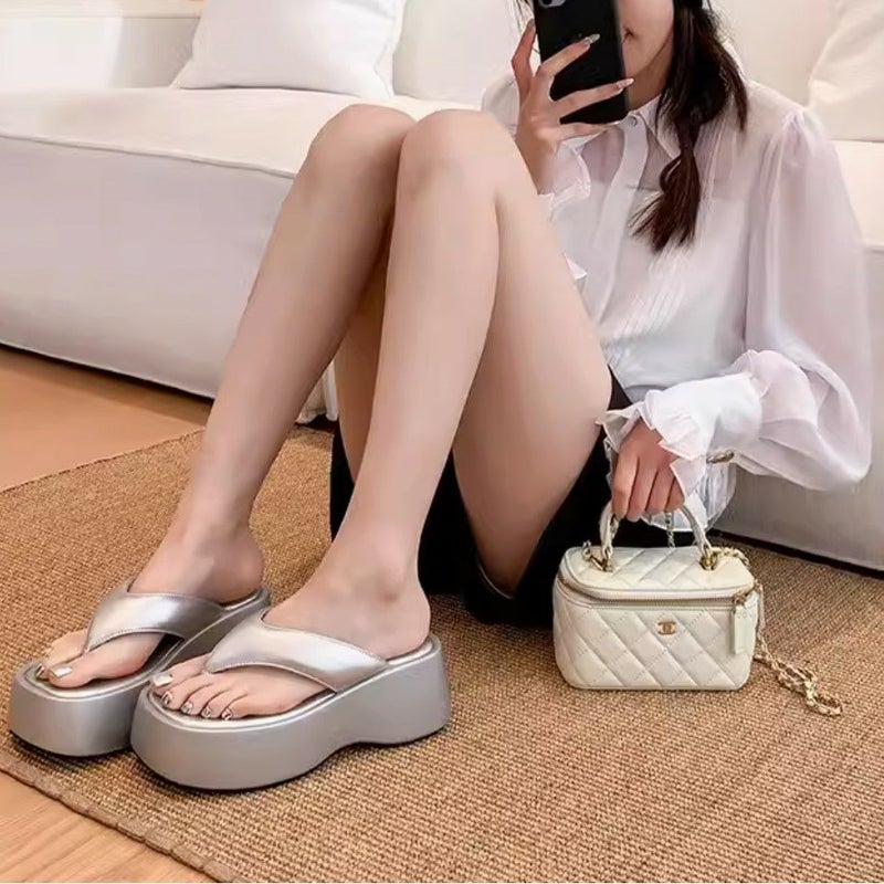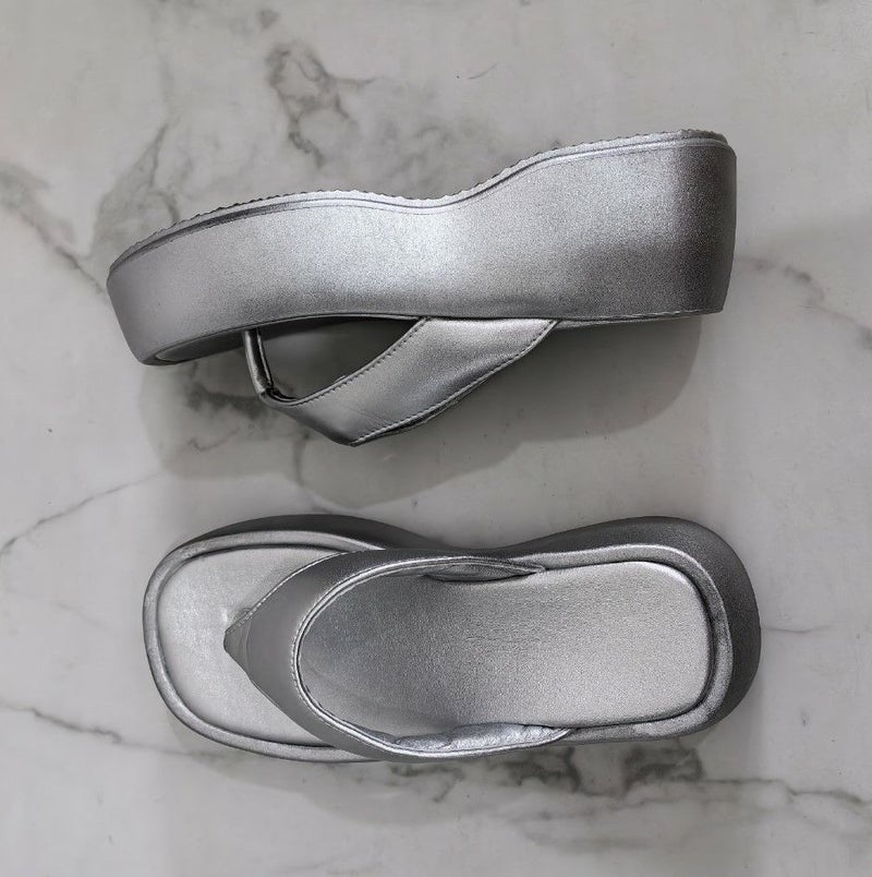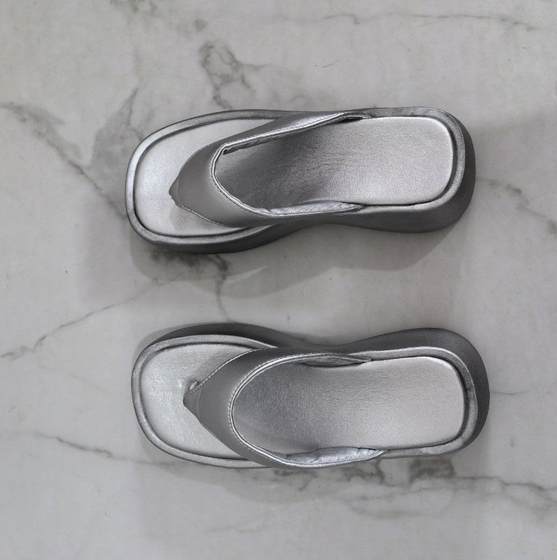 フォルムが可愛く、ボリューム感のあるトレンドライクな足元に仕上がるプラットフォームのトングサンダル