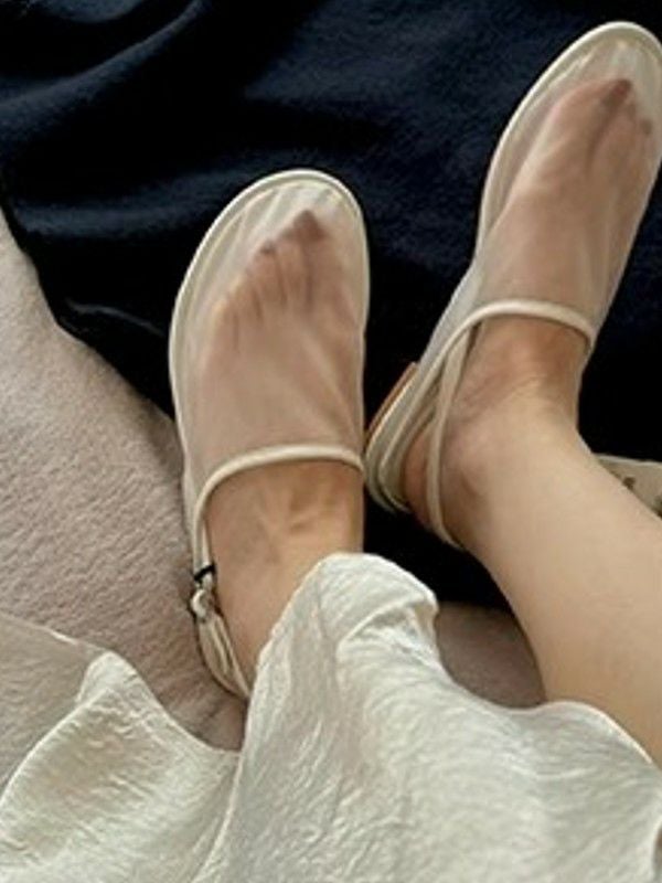 予約 2color ラウンドトゥ メッシュ サンダル