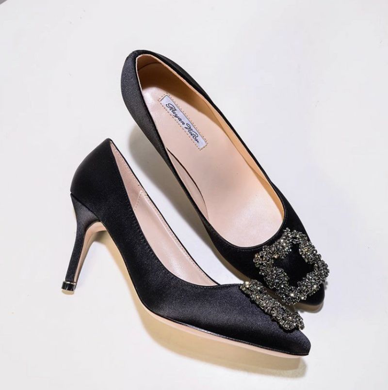 予約 3color Square Bijou パンプス ヒール 2type 6㎝ 8㎝