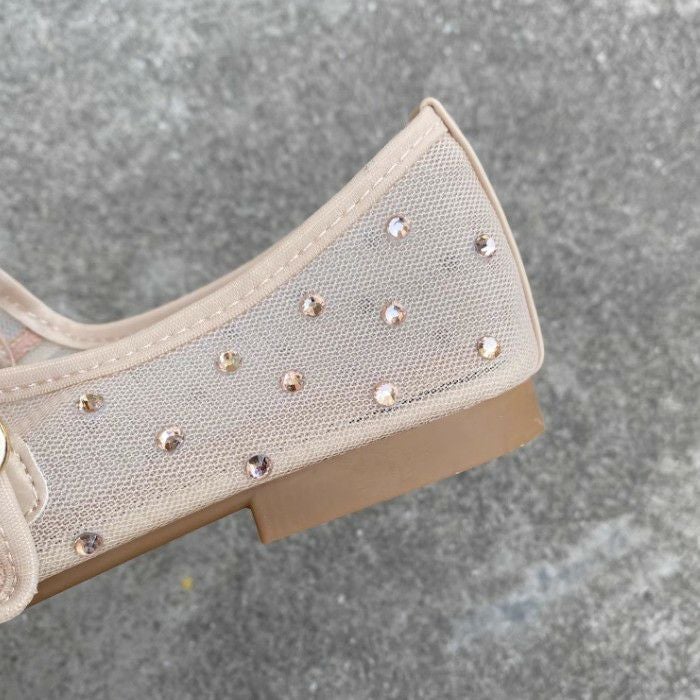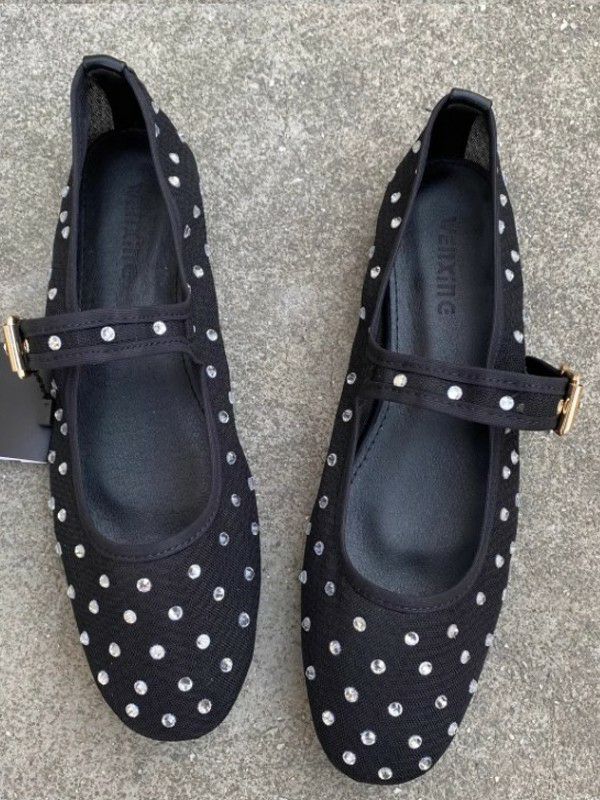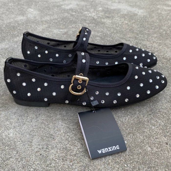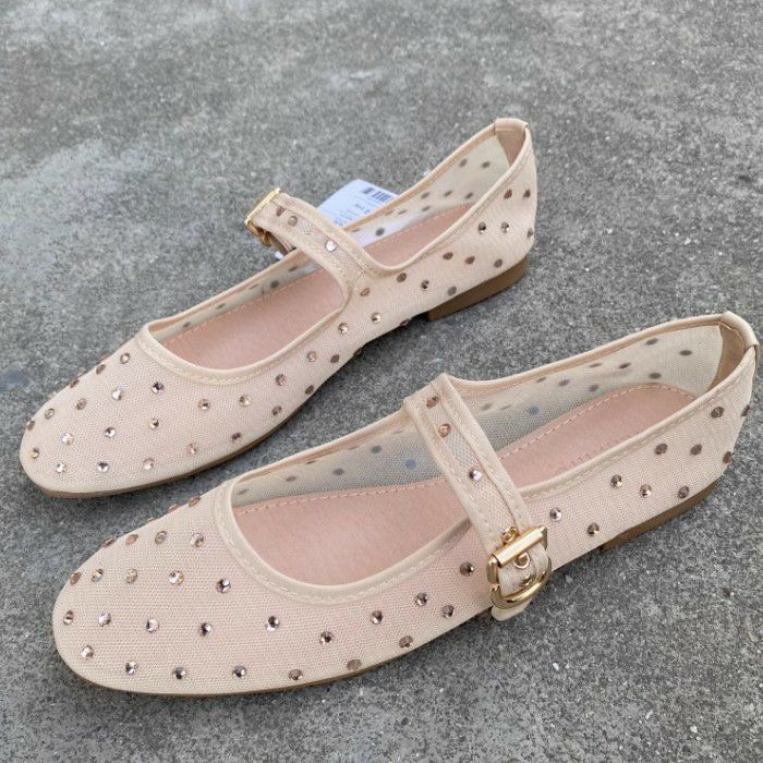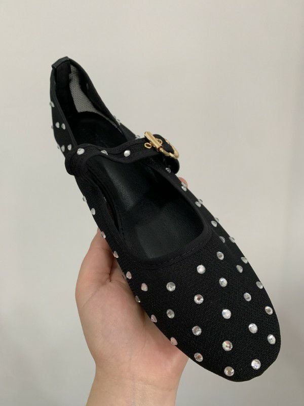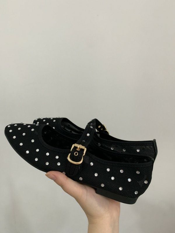 予約 2color メッシュ ストーン ドット ストラップ シューズ